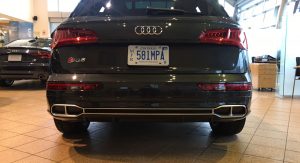 On first glance, it looks like the potent SUV has four exhaust tips and in the description of the model on Audi’s Canadian website, the brand even specifically states that it has quad tips: “The handsome, rugged lines of the Q5 are further enhanced by the tradition of Audi S model. Lowered suspension, unique body styling and quad exhaust tips show this SUV means business,” reads the company’s description of the car.