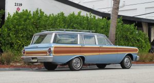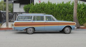 It’s a 1965 Ford Falcon Squire Wagon, and it’s coming up for auction this weekend in Fort Lauderdale, Florida. It doesn’t have a V8 or a manual transmission – just a straight six and a column-shifted slushbox.