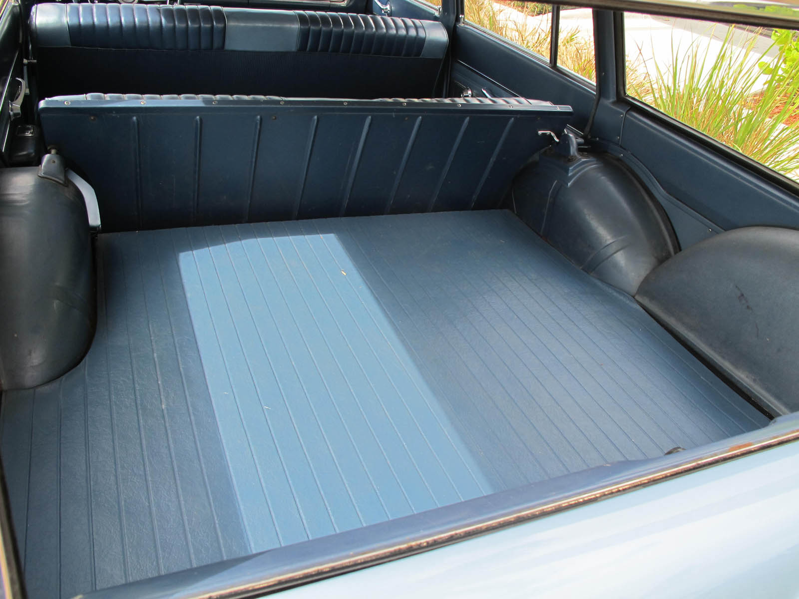 Just look at that Mid-Century Modern styling, the angled wheel arches, the whitewall tires, the wood siding, and the two-tone blue interior to match the bodywork. It has bench seating, for crying out loud – even in the front. All the better, we say, for stretching out on the Great American Road.
