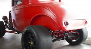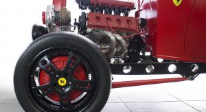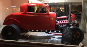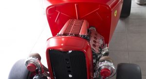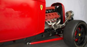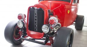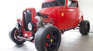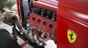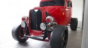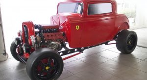 None of that seemed to have bothered the creator of the car you see here, though. It’s a 1932 Ford three-window coupe – a longtime favorite of hot-rodders. But this one has a Ferrari engine… and an identity crises to go with it.