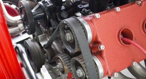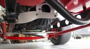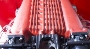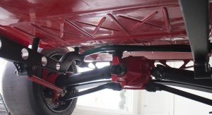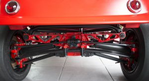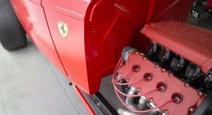 It’s also been equipped with an independent rear suspension, KW shocks, 18-inch alloys, 15-inch disc brakes with four-pot calipers, a full roll cage, five-point harnesses, and a suitably Maranello-esque scarlet paintjob – complete with Prancing Horse shields.