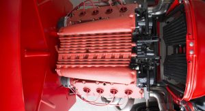 The 3.0-liter V8 engine is ostensibly similar to the one you’d have found in a Ferrari Mondial or 308 GTB in the late 1980s, fitted with twin turbochargers. The resulting 950 horsepower is channeled through a six-speed Tremec transmission with a competition-spec clutch.