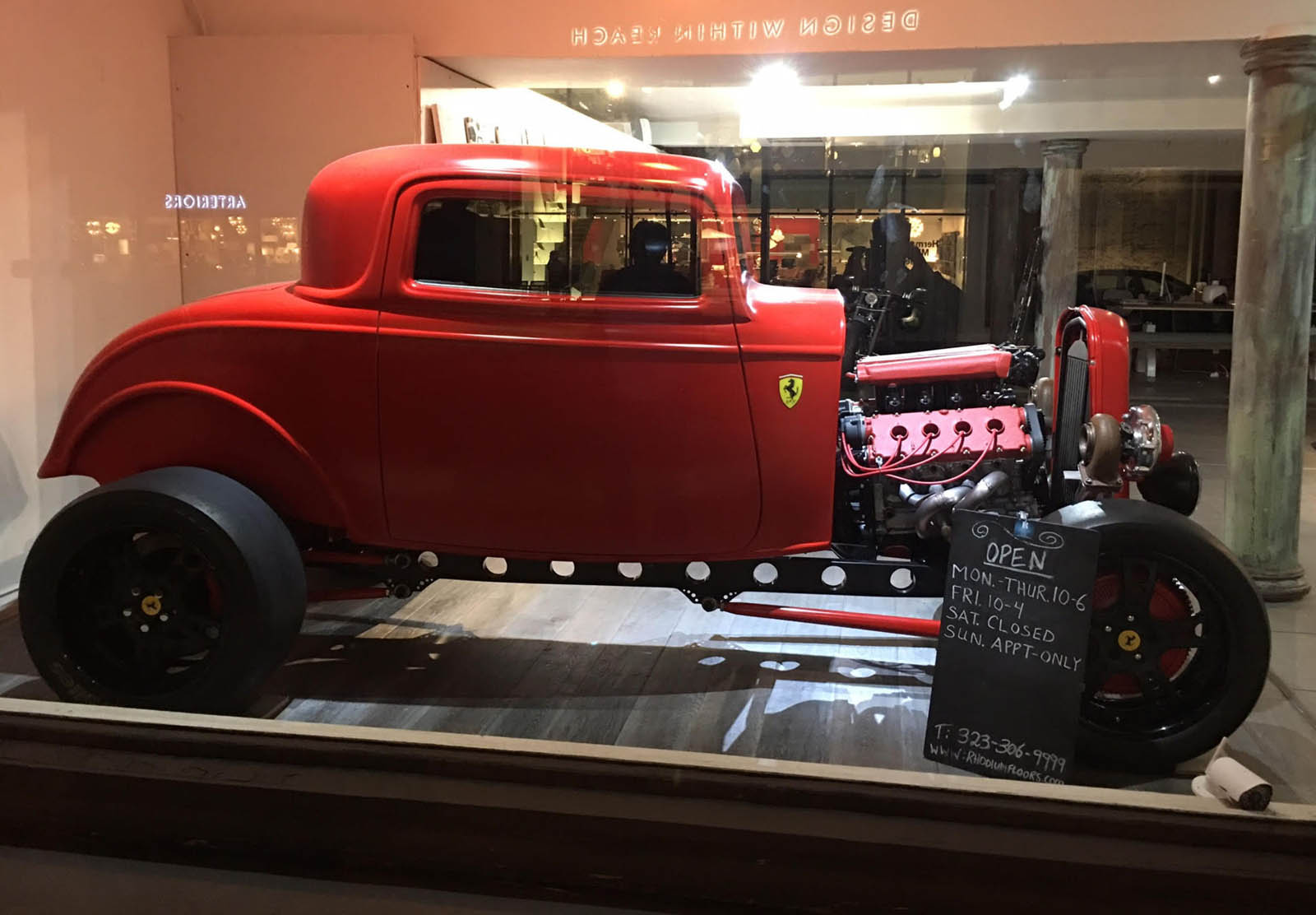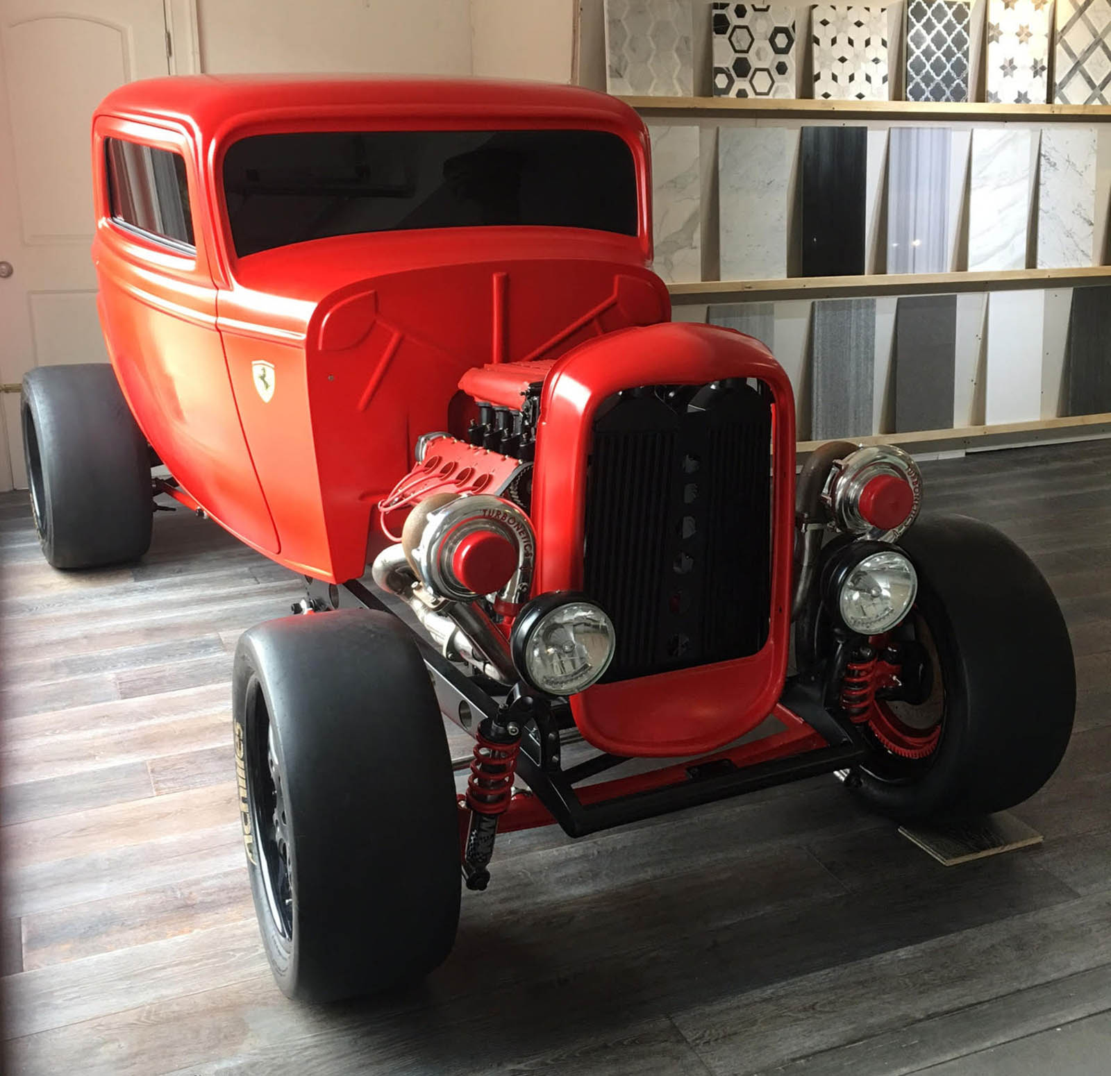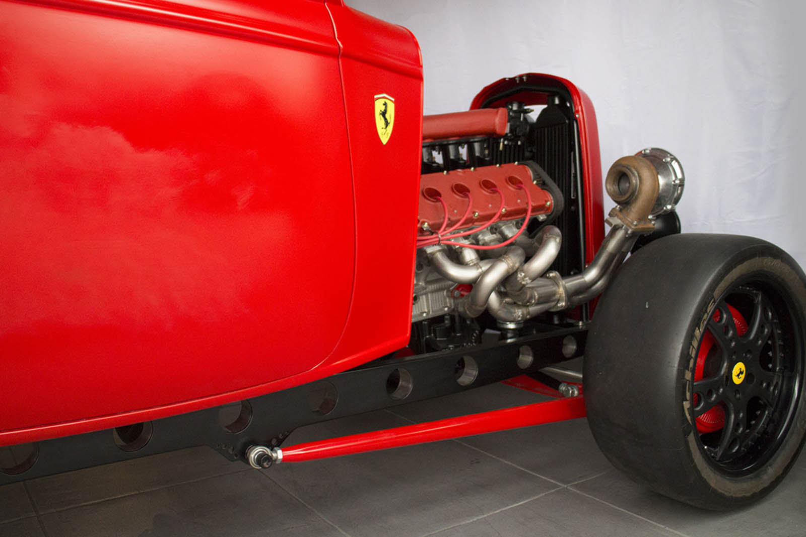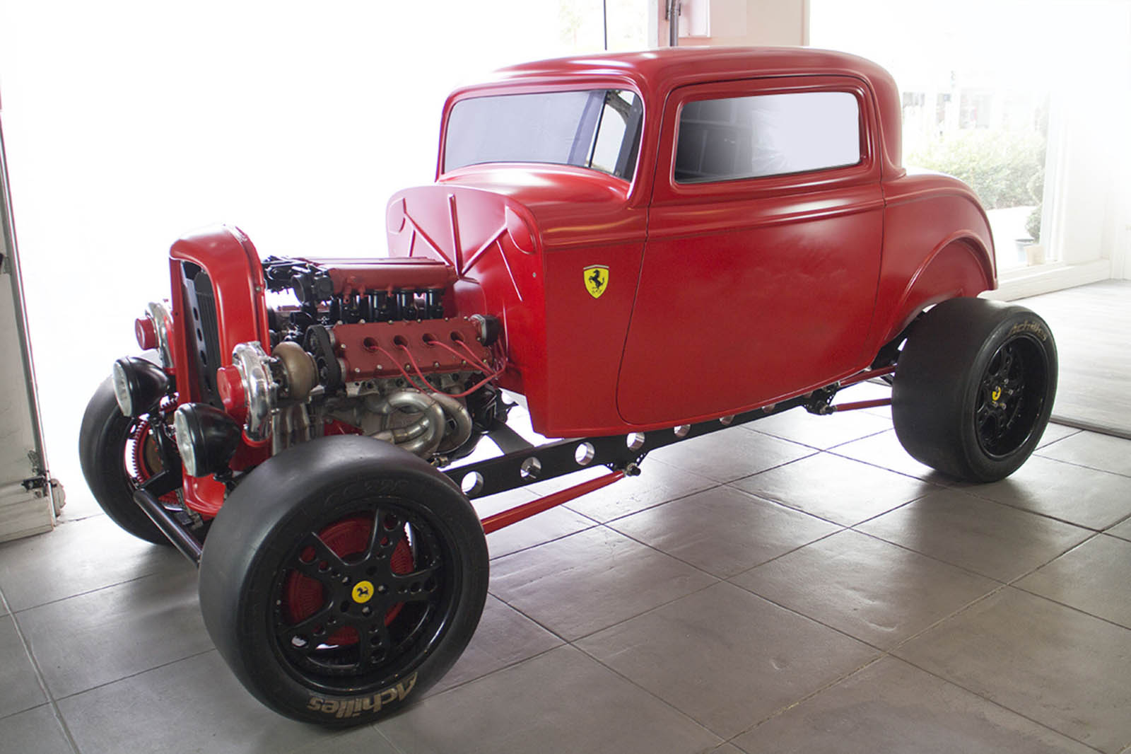 None of that seemed to have bothered the creator of the car you see here, though. It’s a 1932 Ford three-window coupe – a longtime favorite of hot-rodders. But this one has a Ferrari engine… and an identity crises to go with it.