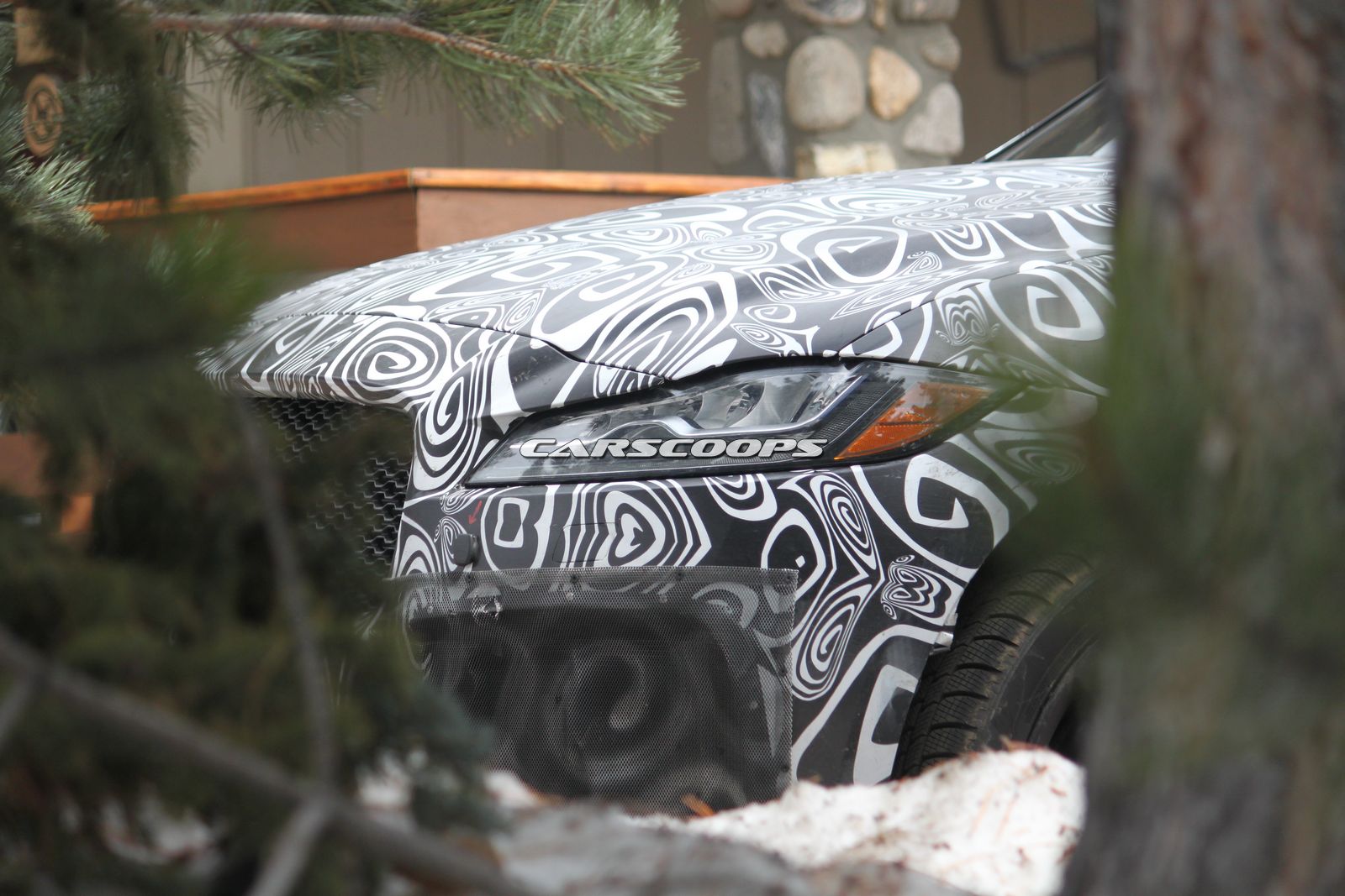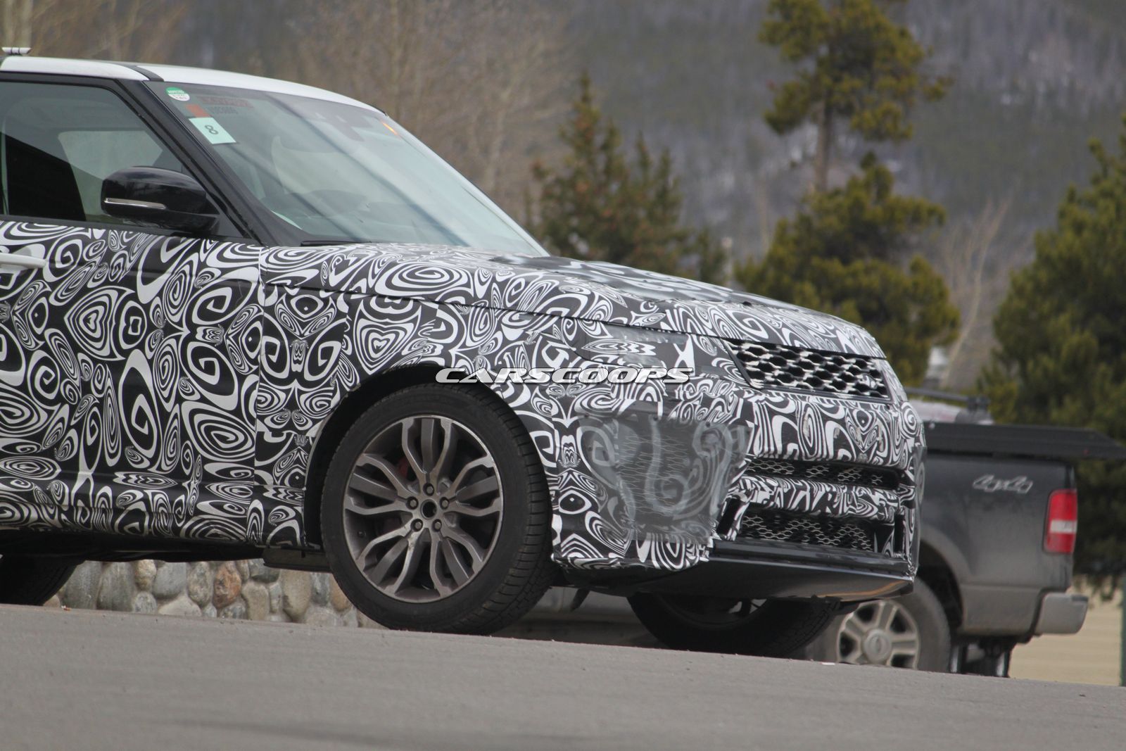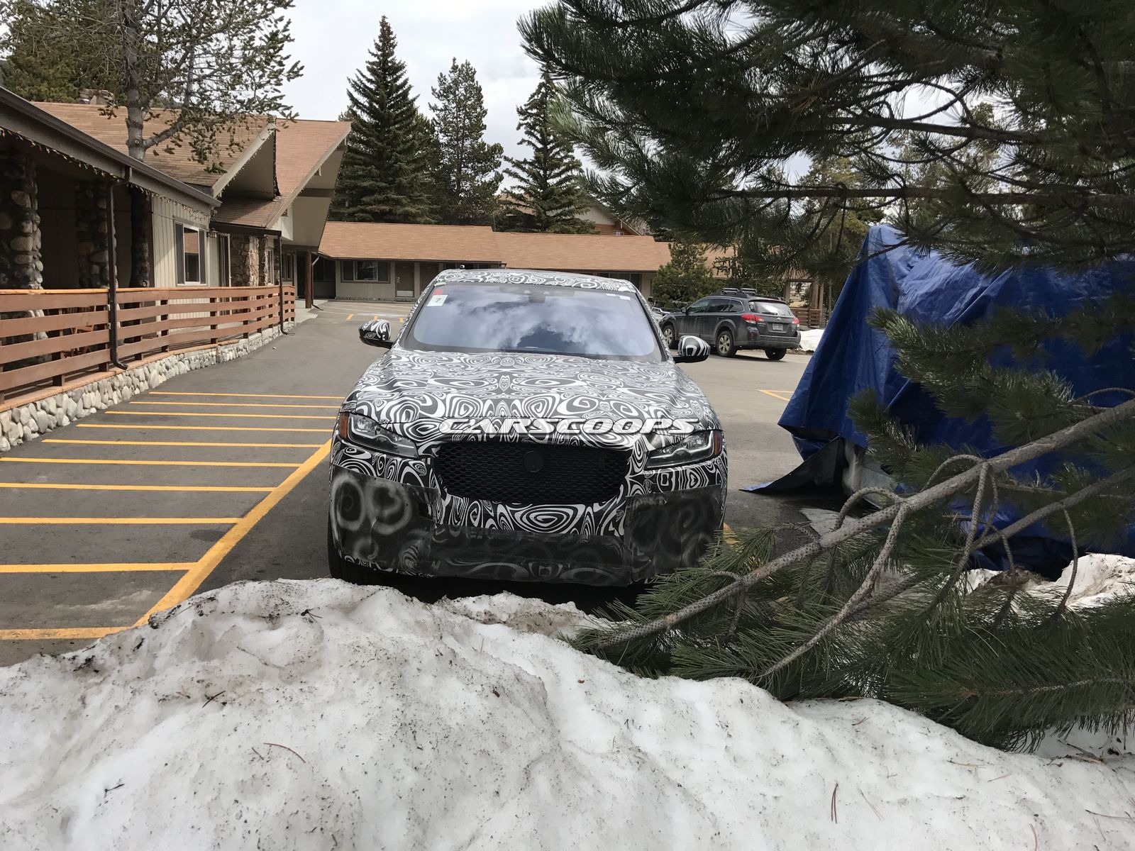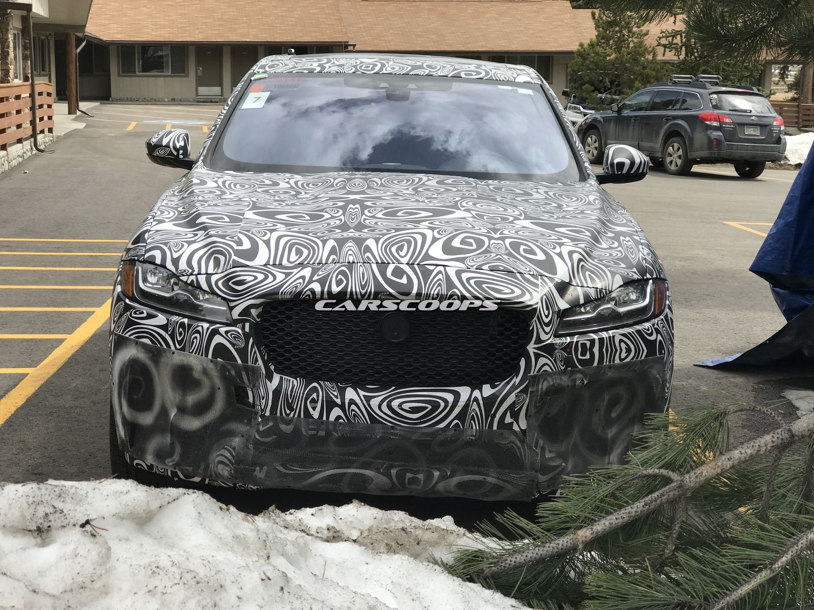 Starting with the F-Pace SVR, it was bathed in black and white camouflage and like other recent prototypes, outfitted with an aggressive front bumper that appears to be hiding a set of huge air intakes. A set of black wheels with Y-shaped spokes also help to separate this prototype from a run-of-the-mill F-Pace.