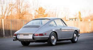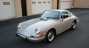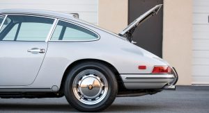 Of course it didn’t hurt that this particular example is in pristine condition, described as “what may be the most original 1968 Porsche 911 coupe in the world, let alone the finest equipped with the intriguing Sportomatic semi-auto transmission.” It was built at the beginning of the transmission option’s first year and sold to a customer in Los Angeles, painted in a single-stage metallic silver with no clearcoat, a black vinyl interior with dealer-installed air conditioning, and later fitted with a Blaupunkt radio.