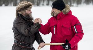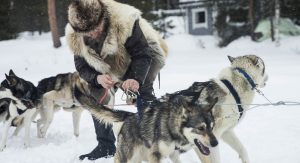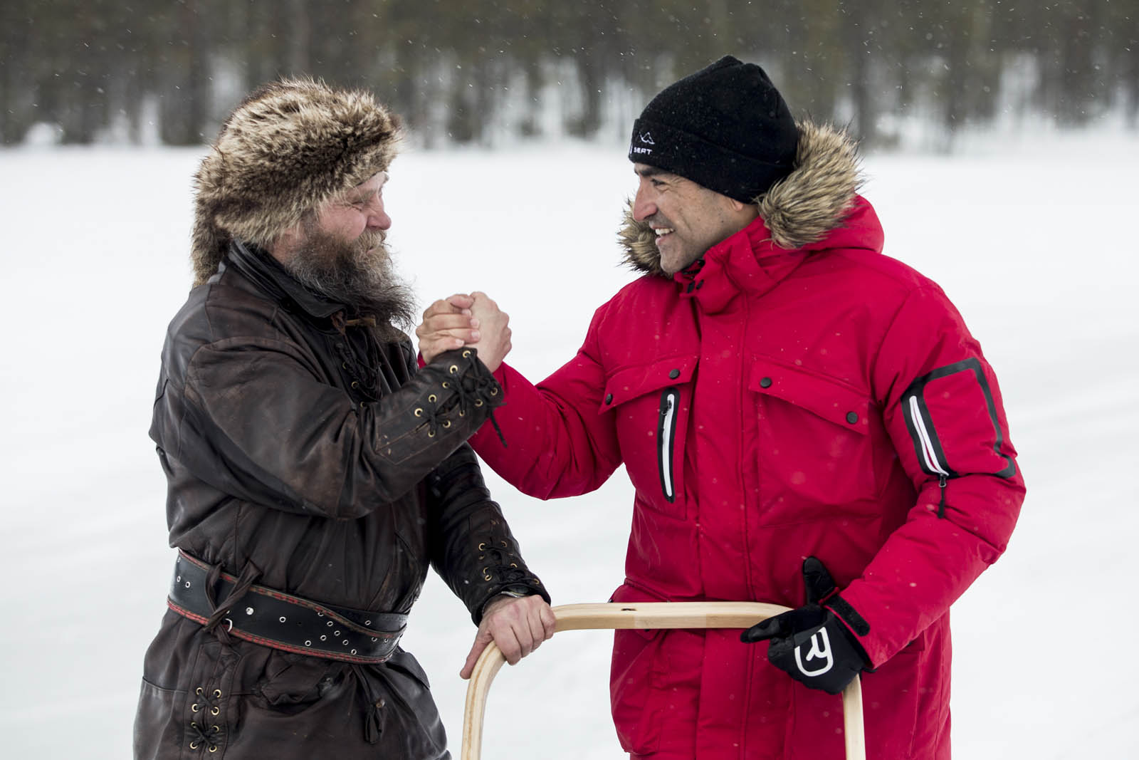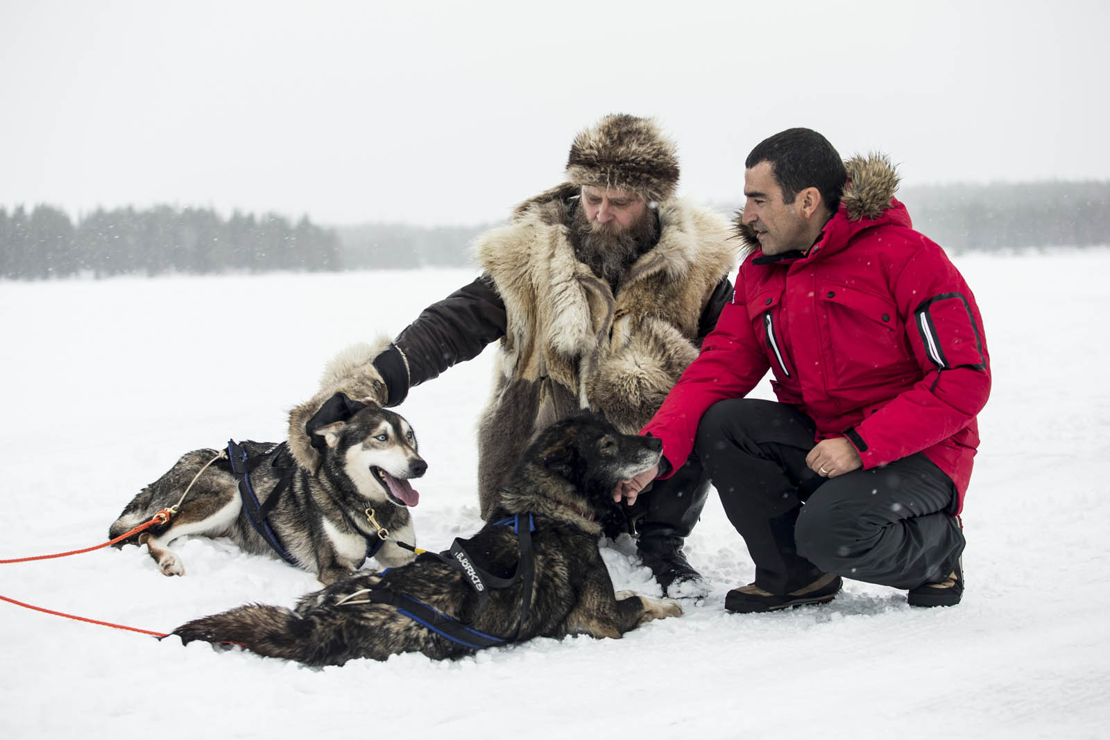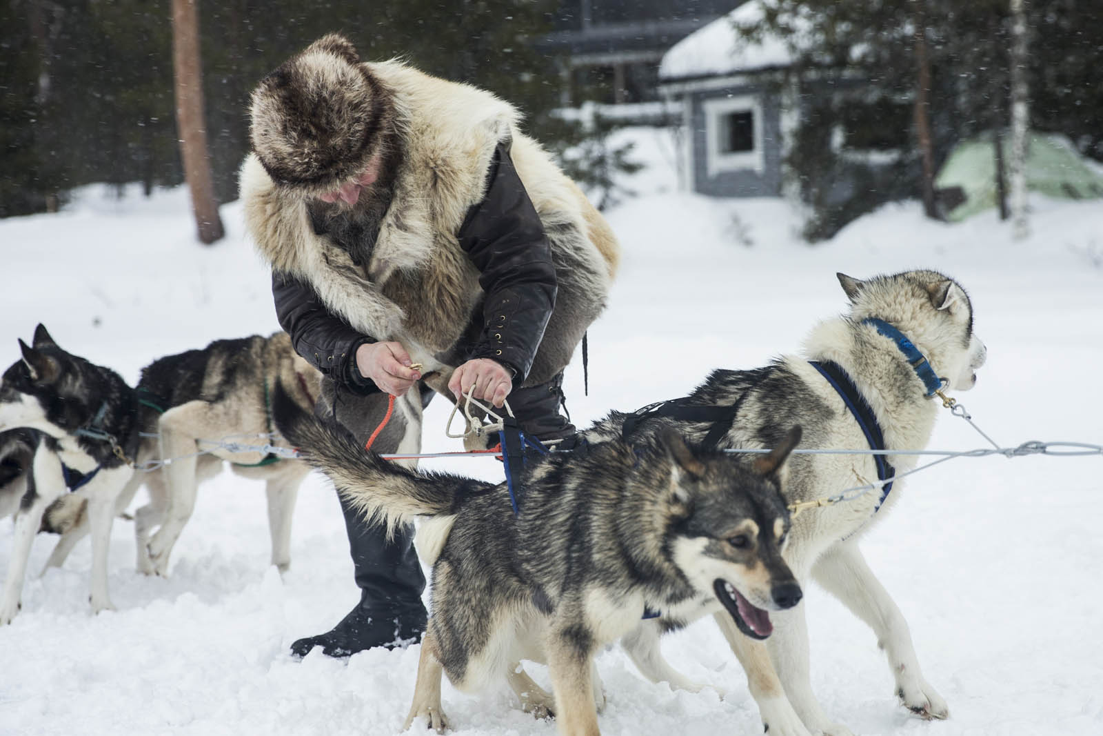The setting is Lake Pikku-Nissi, frozen over with a meter of ice. The competition is a sled pulled by six Alaskan and Siberian huskies, well trained for the purpose, lead by a guy who looks like his family’s been doing this for generations, with his foot on a clawed metal bar that serves as a brake. Those dogs pull pretty hard, after all, off the line and through corners.