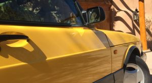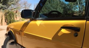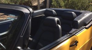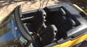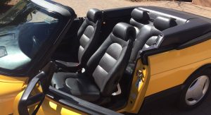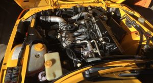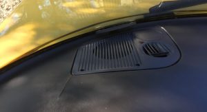 The car’s Monte Carlo Yellow paint remains almost entirely original, with only a small area on the hood needing repair following a garage storage incident. Other faults include a scratch on the front of the hood, a few stone chips on the front fascia and a small impression on the rear bumper.