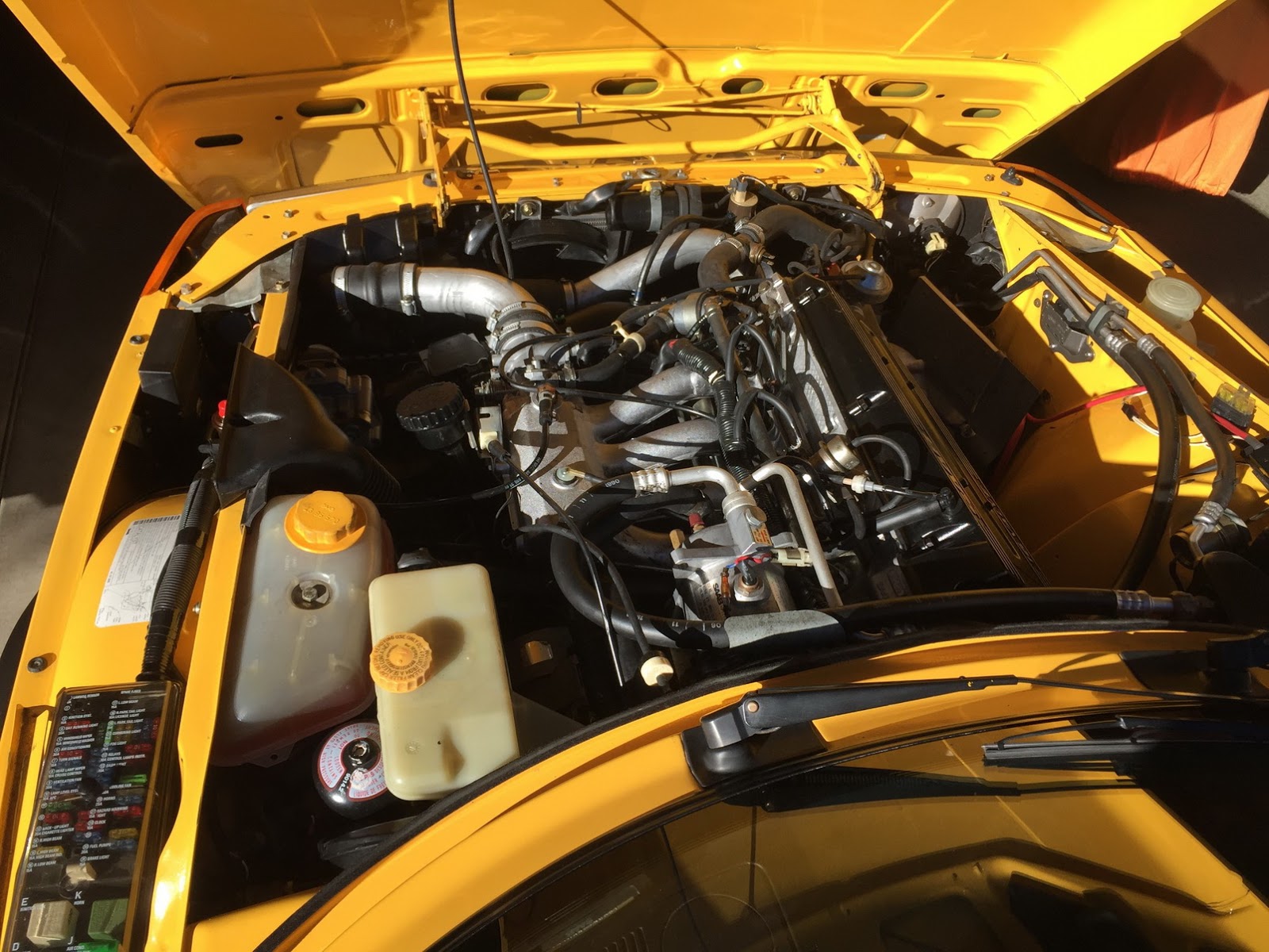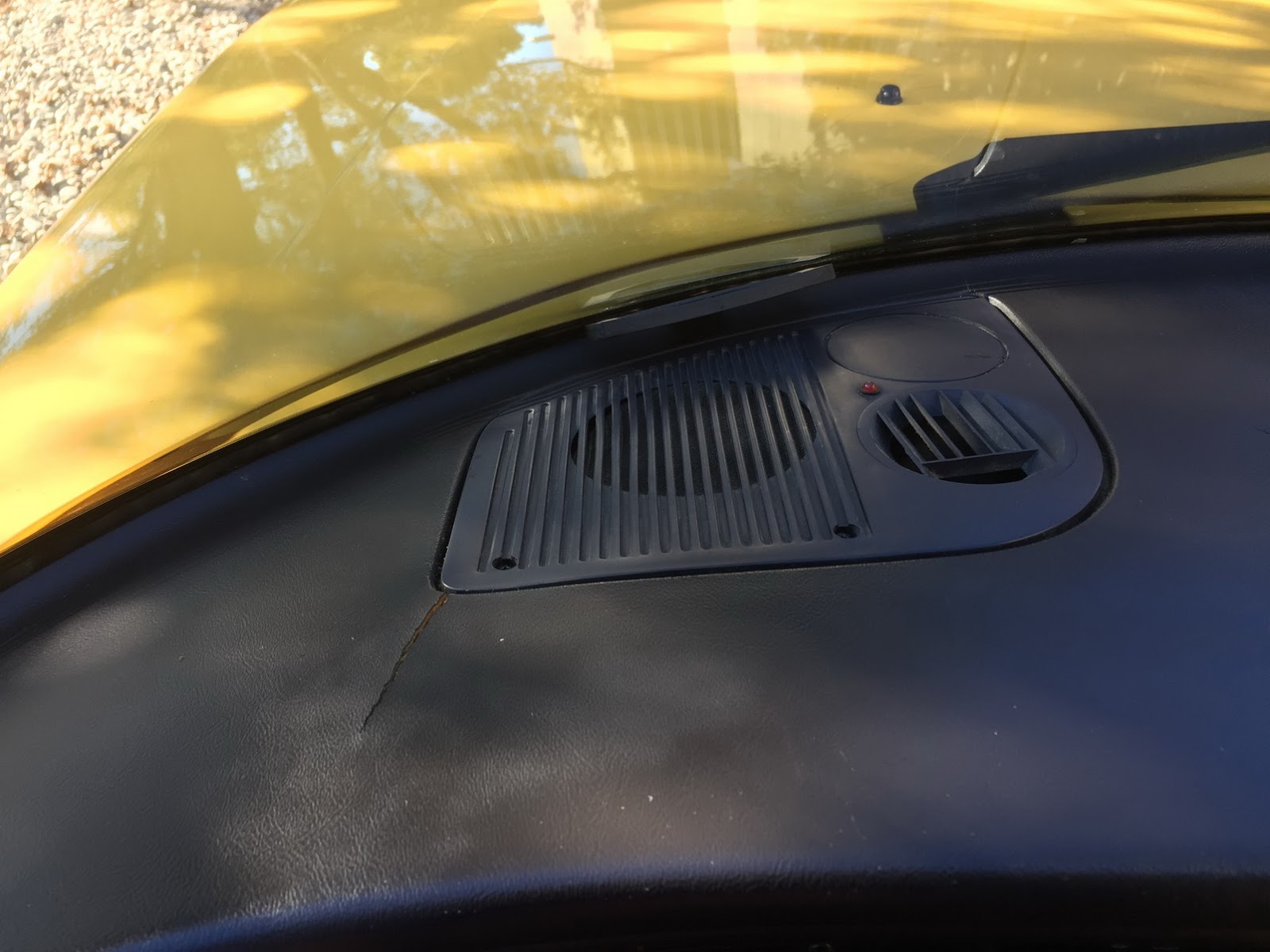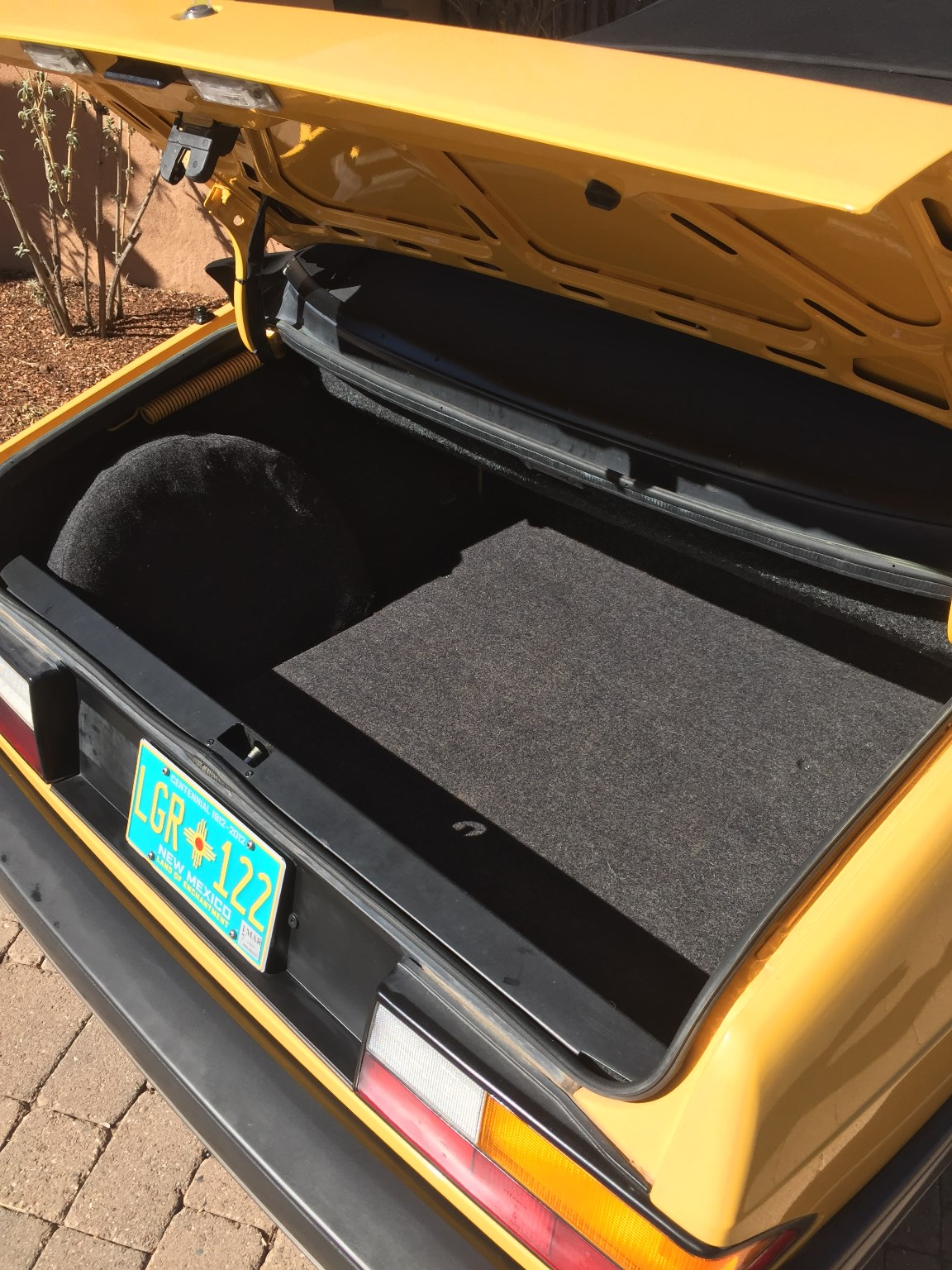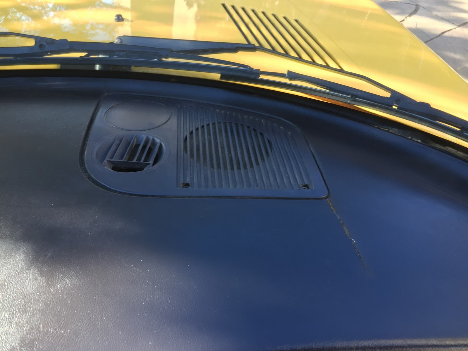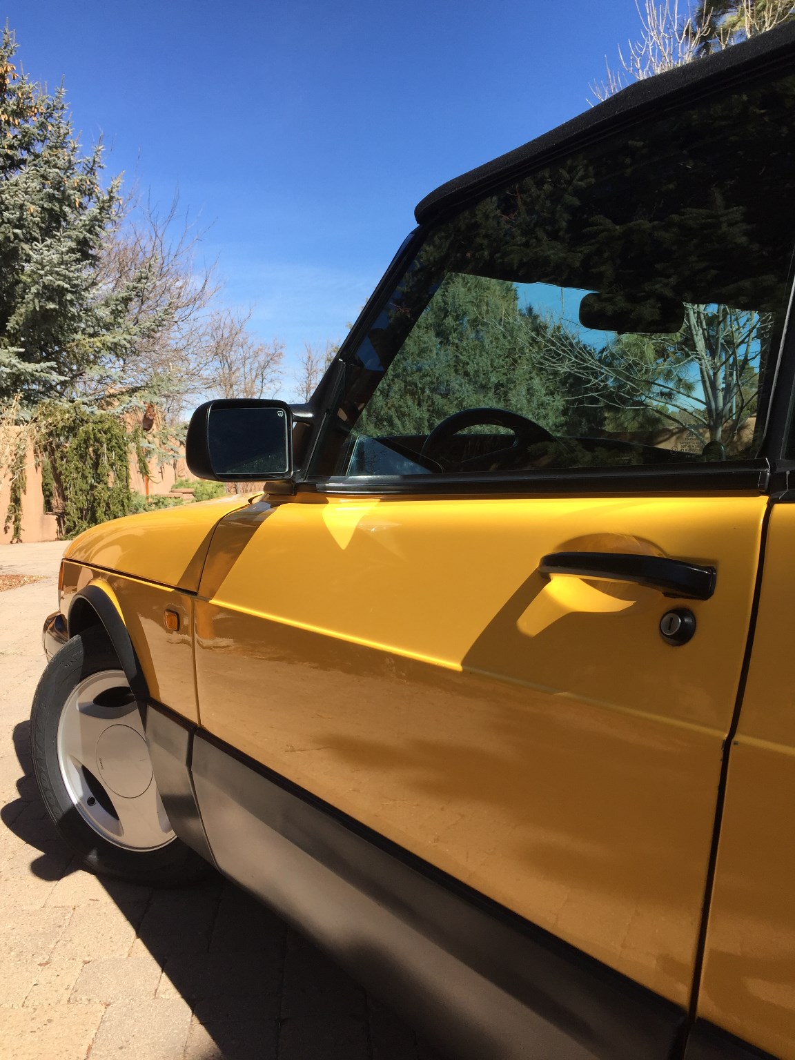 The car’s Monte Carlo Yellow paint remains almost entirely original, with only a small area on the hood needing repair following a garage storage incident. Other faults include a scratch on the front of the hood, a few stone chips on the front fascia and a small impression on the rear bumper.
