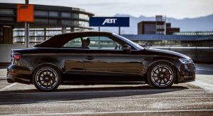 Compared to the stock 2017 Audi S3 Cabriolet, ABT’s interpretation adds 90 PS (89 HP) and 100 Nm (74 lb-ft) of torque, which puts it on the same level as the RS3 Sedan. Sprinting from rest to 100 km/h (62 mph) takes just 4.6 seconds, or 0.5 seconds slower than its fixed roof sibling.