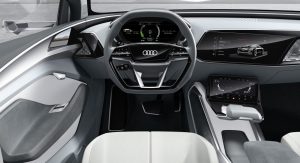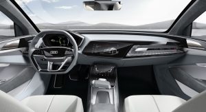 At 4.90 meters (16.1 ft) long, 1.98 meters (6.5 ft) wide, and 1.53 meters (5.0 ft) tall, and with a wheelbase of 2.93 meters (9.6 ft), the new electric Audi concept falls in the same segment as the BMW X6 and Mercedes-Benz GLE Coupe.
