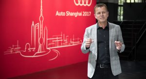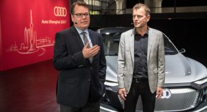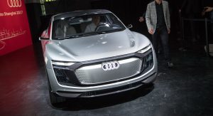 On display at the 2017 Shanghai Auto Show, the study may be referred to as a ‘Sportback’, which is the brand’s way of naming its hatchbacks, but with its crossover-ish shape and sloping roofline, the E-Tron Sportback concept doesn’t exactly resemble any of the company’s current cars.
