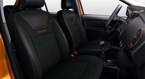 All of them benefit from a more rugged look that is highlighted by the front and rear satin-effect chrome skid plates, protective moldings, Duster-inspired grille, new wheels and a 50 mm (2 in) increased ground clearance. They can be specified in an exclusive body color, called Iceland Grey, whereas the Sandero Stepway can also be had in Ochre Orange.