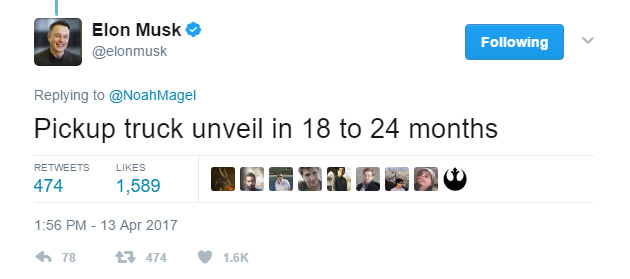 Getting back to the Tesla news, Musk said the company is still working on a pickup truck and it will be unveiled within 18 to 24 months. The outspoken executive also reiterated plans for a new Roadster, but unfortunately there’s no timetable on that one.