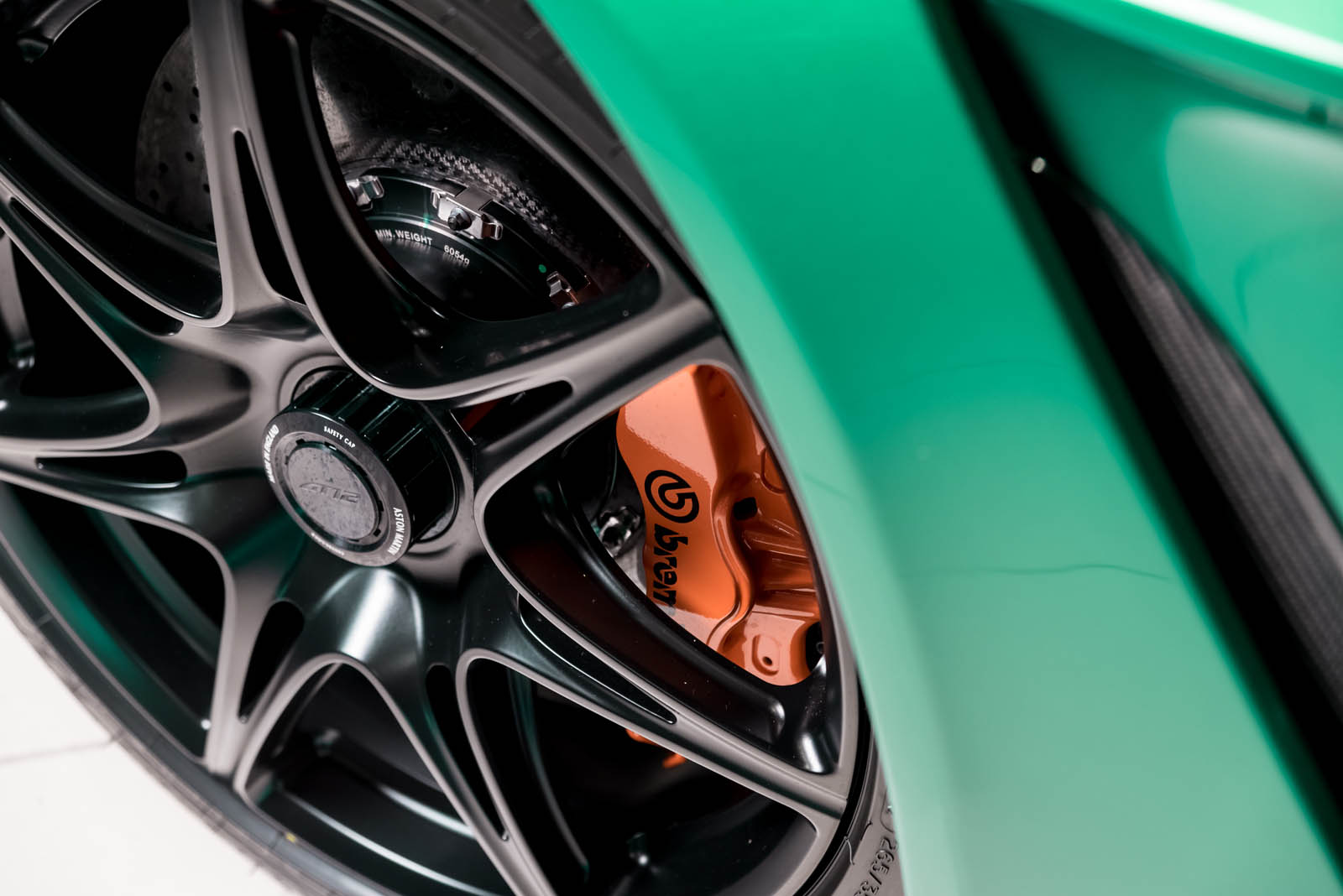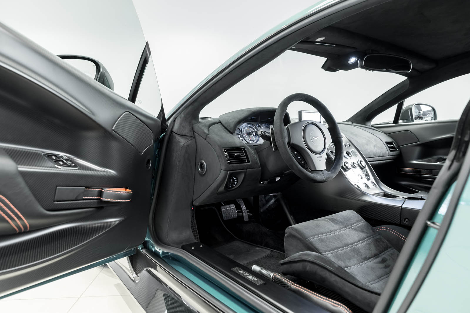 Aston only made 100 of them, of which this (the 74th example) is the only one to have left the factory in Viridian Green. With a black interior and orange accents, it only has delivery miles on it and remains completely new and unregistered, waiting for its new owner to break it in. It still has a couple years left on the warranty, for crying out loud.