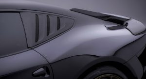 Of course, that’s not all. There’s also the vented carbon side window cover, the bespoke milled exhaust quad tips (full switchable exhaust system), the diamond metal grills and mesh, forged 21 & 22″ wheels, custom springs, a bespoke satin roof and an engine performance upgrade, good for 800 HP.