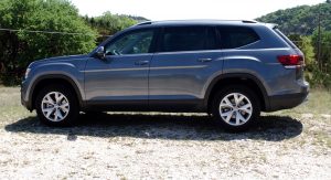 Face this fact: all these three-row SUVs look basically the same. Apart from some detailing, they’re pretty much just big boxes. The Mazda CX-9 may be the most seductive of them all, but it pays for that in other ways. The Atlas falls into the boxy category. In profile, it’s fairly anonymous, but it’s hardly offensive.