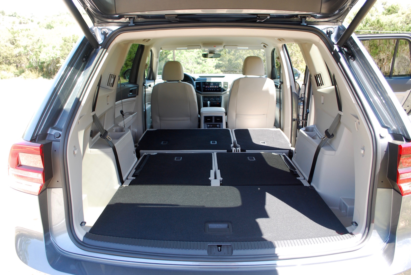 Leave all the seats up and there’s a decent amount of space for a couple of suitcases or bags. Fold the third row down and there’s a lot of space. But fold the second row, too, and there’s a fantastically long and tall space that could nearly shame a minivan. Acadia owners will recognize the space, although they would be envious that the seats in the Atlas fold completely flat.