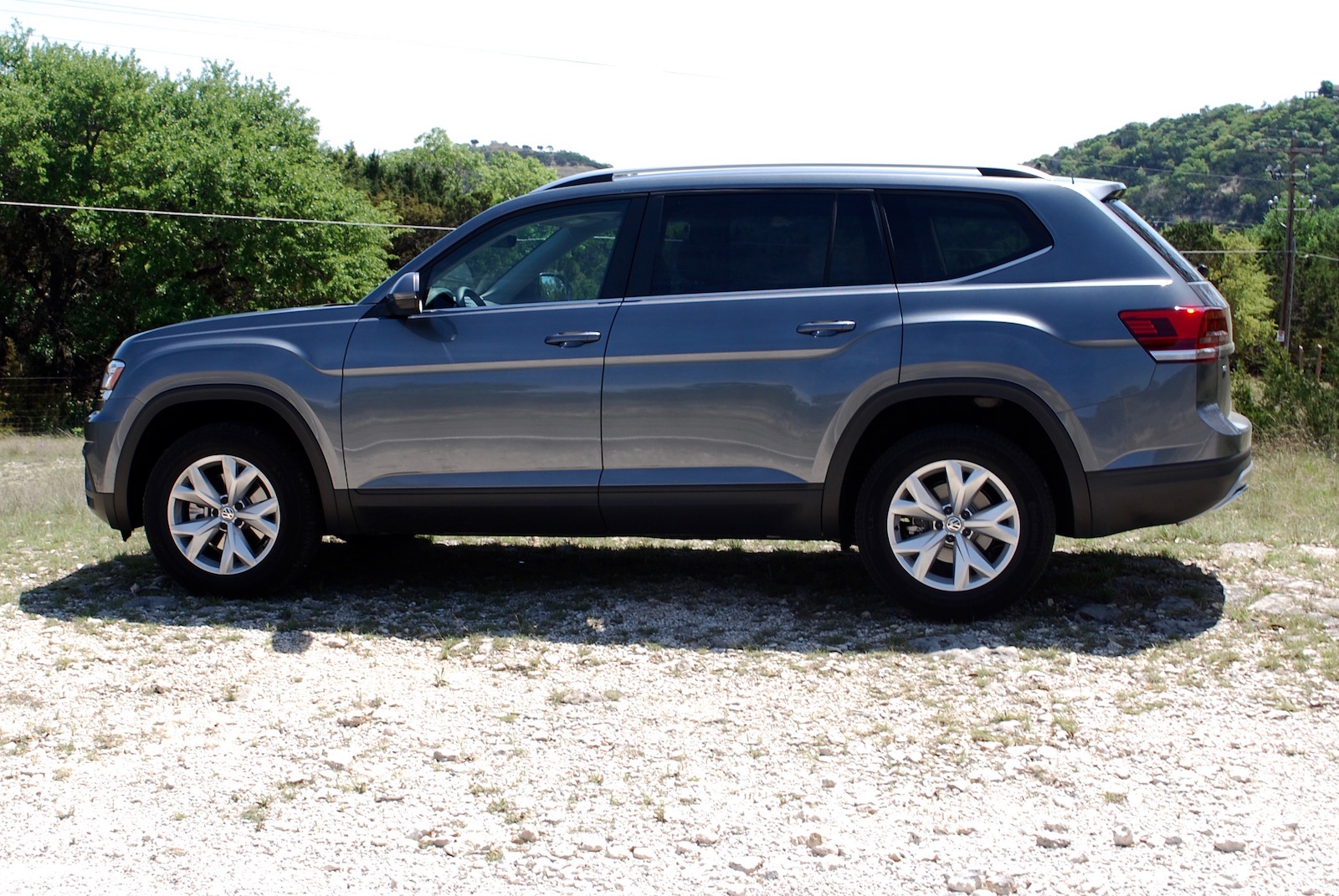Face this fact: all these three-row SUVs look basically the same. Apart from some detailing, they’re pretty much just big boxes. The Mazda CX-9 may be the most seductive of them all, but it pays for that in other ways. The Atlas falls into the boxy category. In profile, it’s fairly anonymous, but it’s hardly offensive.