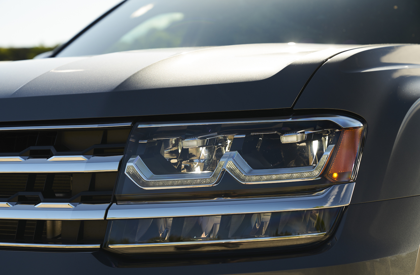 Detailing is more controversial. The enormous grille here does away with the simple three horizontal bars that have adorned most VWs this decade, in favor of a bumpy version of it that’s likely supposed to be tough, but comes off like a chromed topographical map, also echoed in the details of the standard LED headlights. And perhaps even more controversial are wheel arches that make the Atlas look as if it’s wearing particularly square shoulder pads.