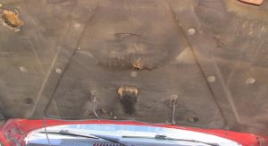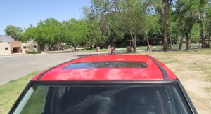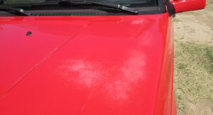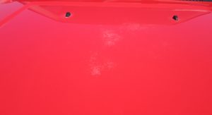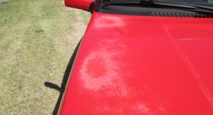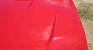 You can clearly see that the Monza Red coating is fading on the hood as well as on the roof, although overall the car seems to be in pretty decent condition. It’s also had a replacement rear bumper cover installed in 2015 following a minor accident.