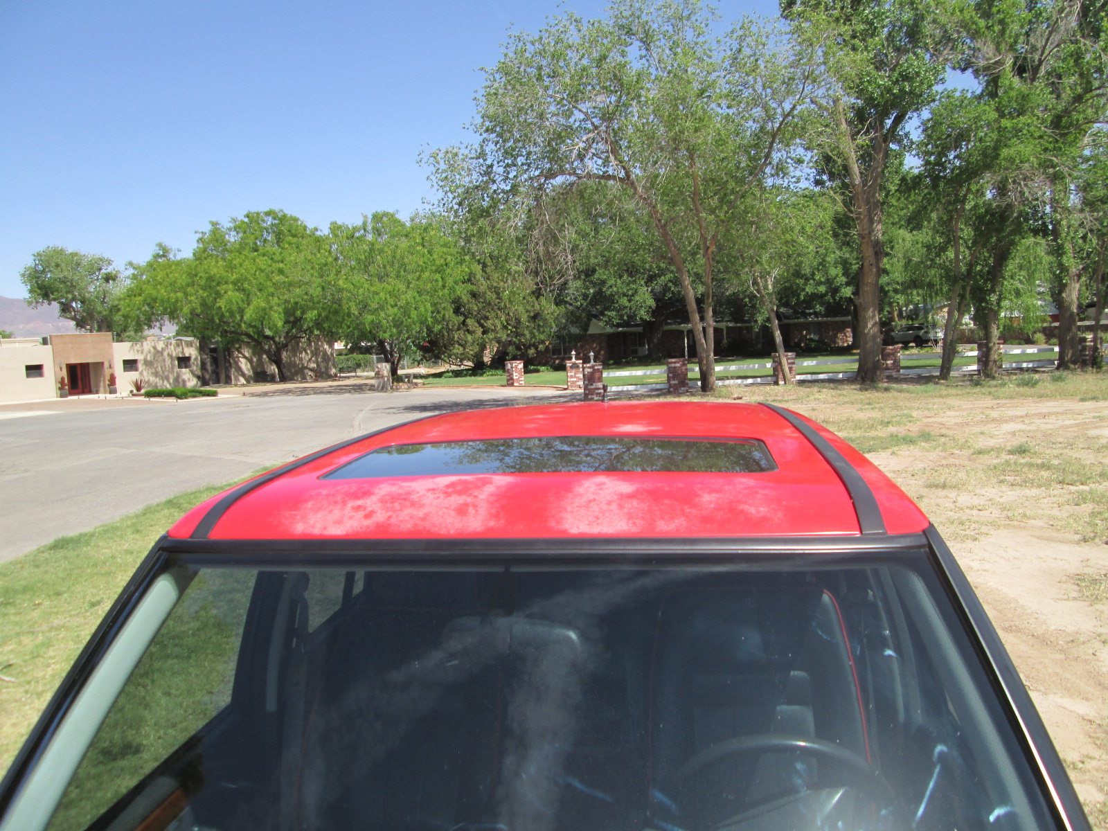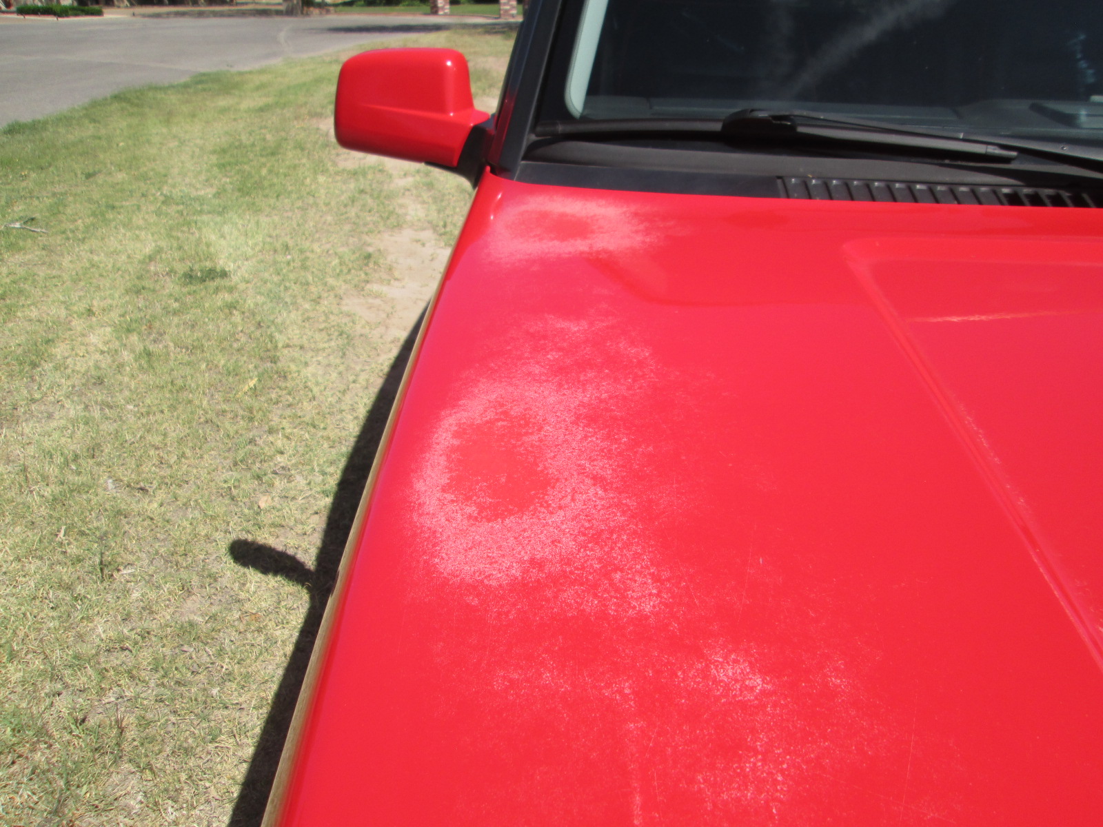 You can clearly see that the Monza Red coating is fading on the hood as well as on the roof, although overall the car seems to be in pretty decent condition. It’s also had a replacement rear bumper cover installed in 2015 following a minor accident.