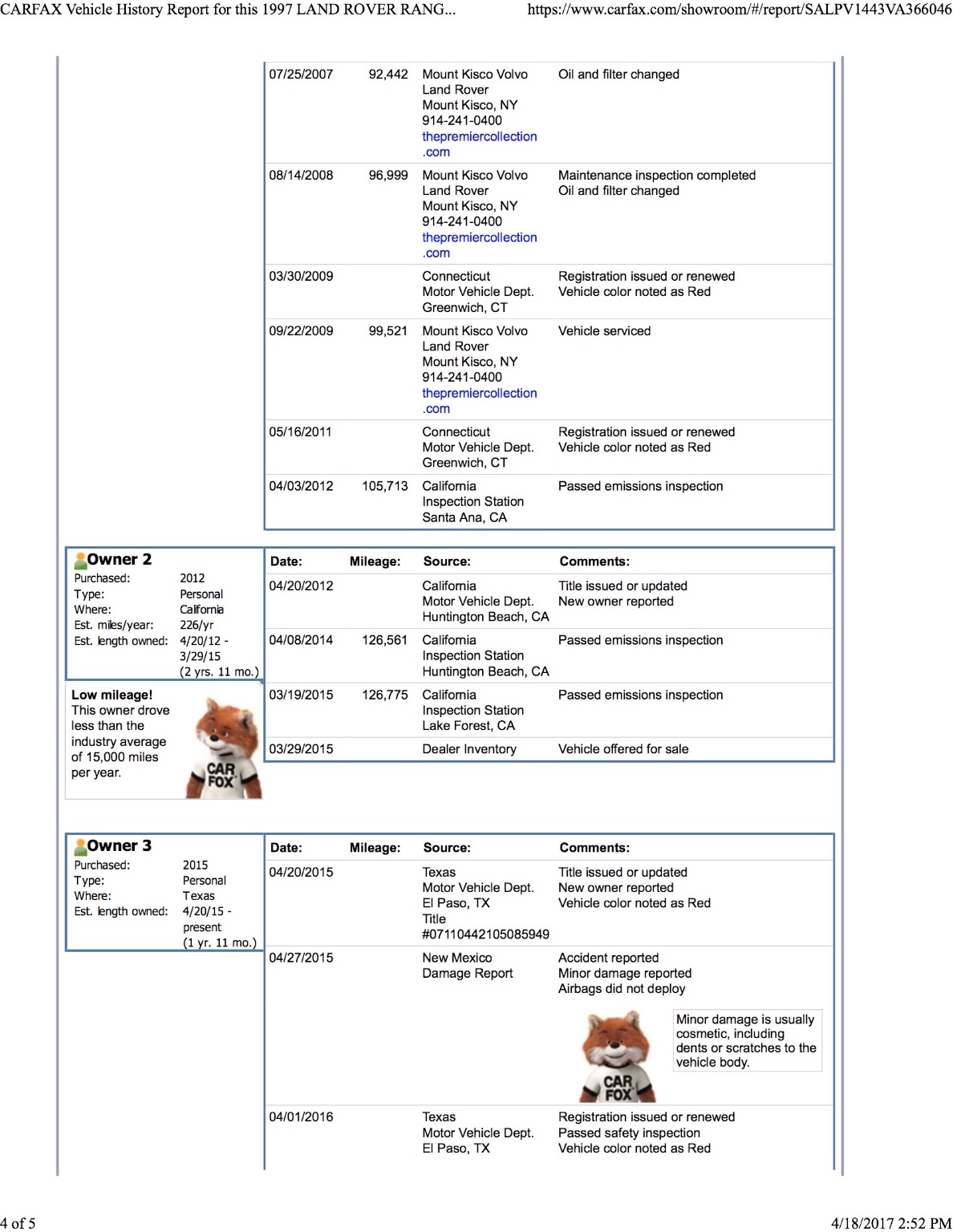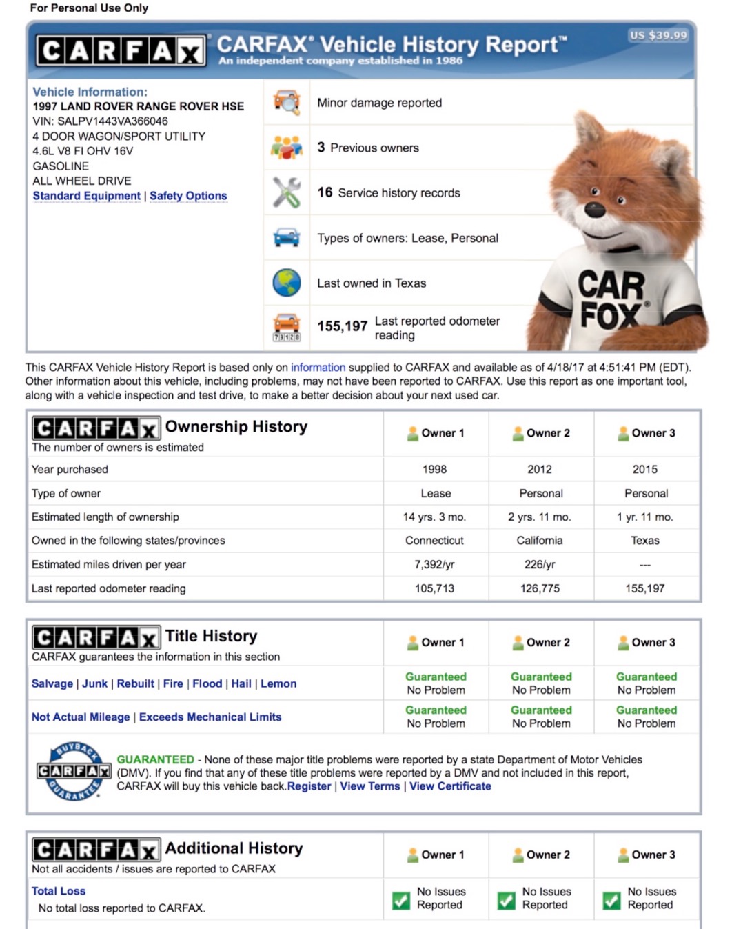 Inside, this Range Rover has black leather seats with red piping specific to the Vitesse Edition. It’s also equipped with a Harman-Kardon 300-watt 12-speaker stereo system, which is a great option to have, although the seller says that the dash cluster display is dim. Other issues inside include a broken sunroof air-flap, preventing the roof from opening properly.