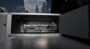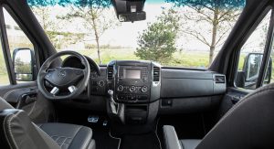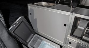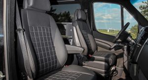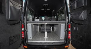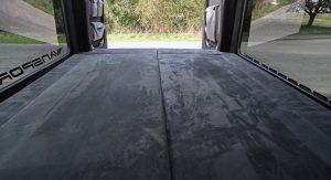 Inside, they gave it an anti-drumming product on the roof and sidewalls, followed by additional isolation, subsequent to which the tuner installed a modular aluminum system floor by Schnierle to secure the single seats, and camper furnishings.