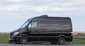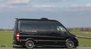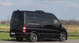 Their latest project is a Mercedes-Benz Sprinter 316 CDI Kombi, which received a number of exterior modifications such as a front spoiler, side sills, rear apron, and a set of alloy rims by VEST, with a special matte anthracite-gray-metallic coating.