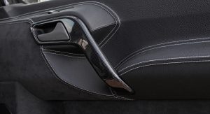 Black Gaucho leather with contrast seams and waffle pattern has been added to the seats, the lower part of the dashboard and door panels are lined in Alcantara, the roof liner, including the A and B pillars, feature a black microfiber, and the side panels in the driver and passenger area have a black Porsche carpet.