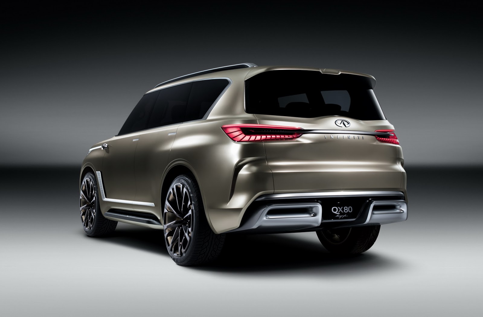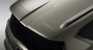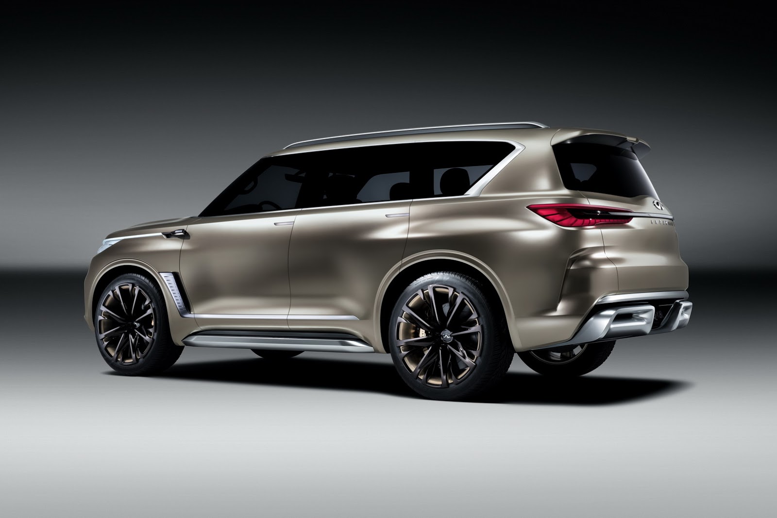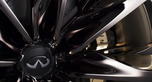 Elsewhere, Infiniti has designed the QX80 Monograph with doors that when open, reveal brushed aluminum still steps. There’s also vents behind the front wheels which the automaker says can reduce drag by funnelling out turbulent air from the wheel arches. Huge 24-inch, chromium black wheels with brushed copper accents are also present.