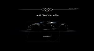 Teaser images of the C10 reveal that it will adopt an incredibly low-slung body and be mid-engined. They’ll be wing mirrors sticking out of the front wheel arches, a large set of wheels, bold rear diffuser and a very short hood. What’s more, it appears as though Calafiore’s hypercar will feature a removable hardtop.