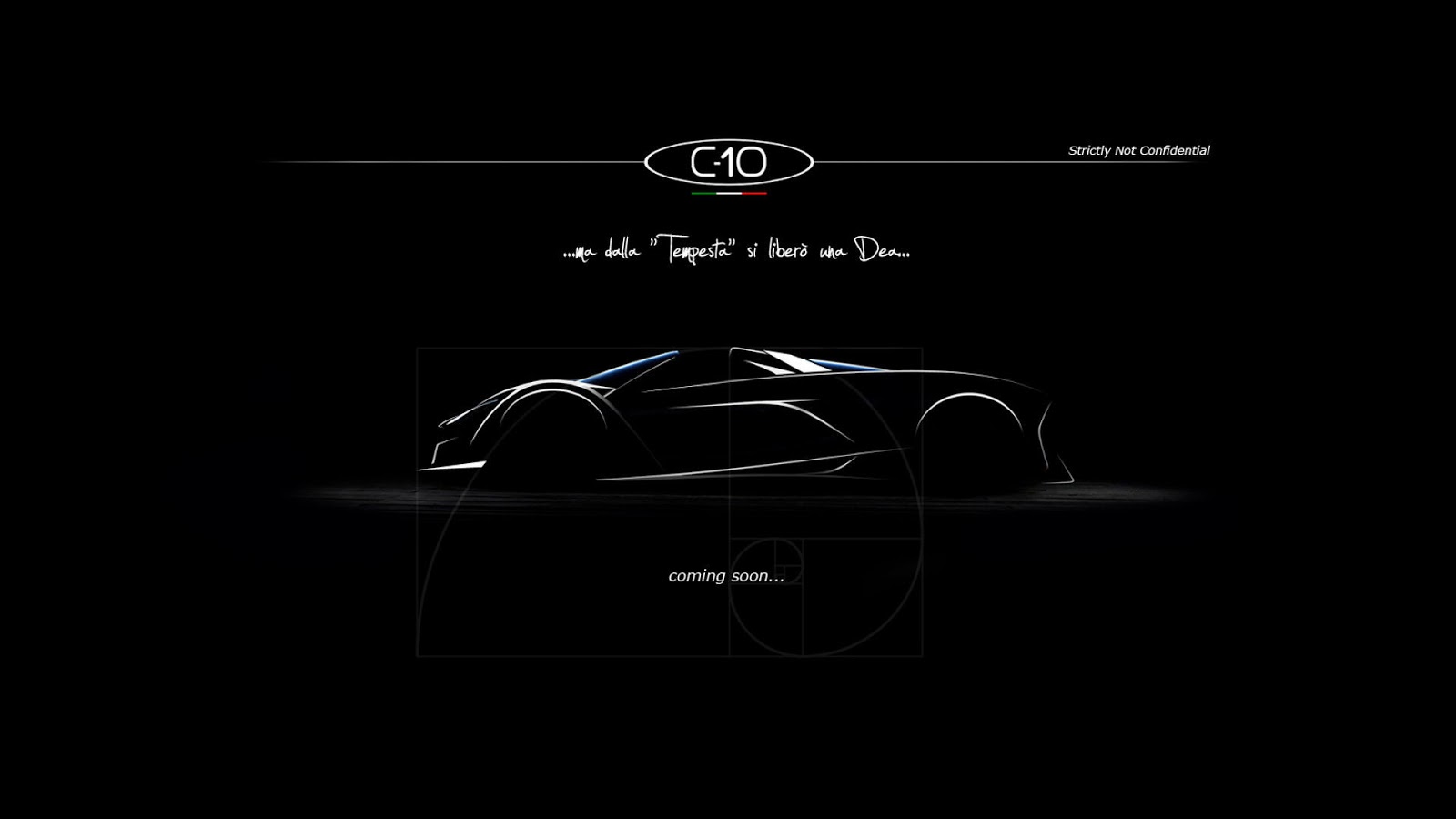 Teaser images of the C10 reveal that it will adopt an incredibly low-slung body and be mid-engined. They’ll be wing mirrors sticking out of the front wheel arches, a large set of wheels, bold rear diffuser and a very short hood. What’s more, it appears as though Calafiore’s hypercar will feature a removable hardtop.