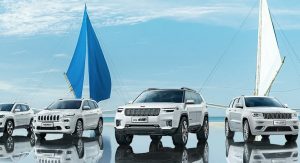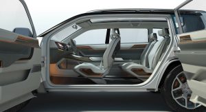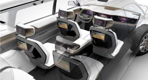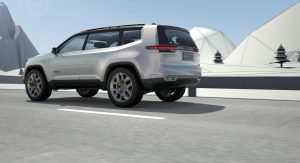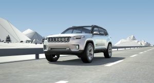 The futuristic interior puts the Grand Cherokee to shame as it features an attractive mix of premium styling and upscale materials. Drivers are treated to a digital instrument cluster, a uniquely shaped steering wheel, and a high-tech infotainment system. Passengers aren’t left out either as the co-pilot gets their own infotainment system, while rear seat passengers get two: one in the headrests and another in the seats. Elsewhere, we can see a floating center console, tasteful wood trim, and gloss black accents on the seat backs.
