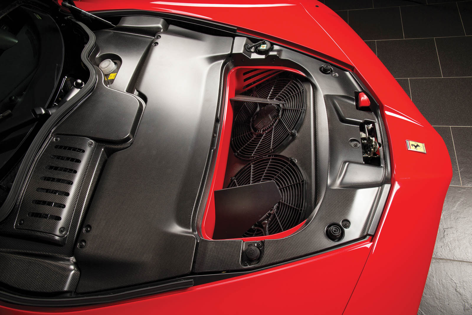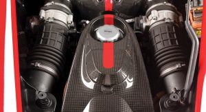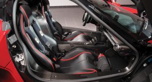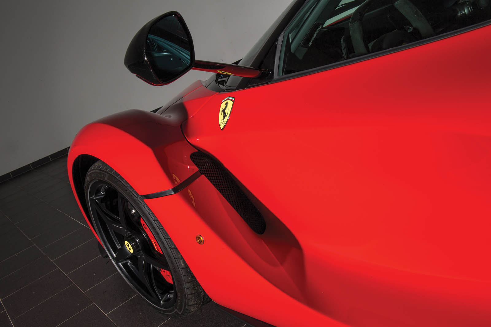 The Ferrari is described as “one of the earliest examples produced,” decked out in the traditional Rosso Corsa with black roof. One of just 499 made, this example was delivered new in Italy back in April 2014, and has only accrued 112 miles in the last three years, leaving it in practically factory-fresh condition. (It’s pictured in the extensive gallery below by Pieter E. Kamp.)