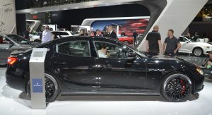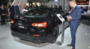 Powering the Ghibli S Q4 Nerissimo on display in NY is a Ferrari-developed twin turbo 3.0-liter V6 engine, good for 404 horsepower. With the help of Maserati’s Q4 intelligent all-wheel drive system, this Ghibli is able to accelerate from zero to 60 mph (96 km/h) in just 4.7 seconds, while reaching a top speed of 176 mph (283 km/h).