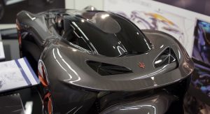 Unlike many current vehicles which favor straight lines and sharp edges over flowing body panels, Castaldi’s Maserati Hommage has a gorgeous, curvy design made all the more impressive by the single sheet of glass which acts as the windscreen, roof and rear window.