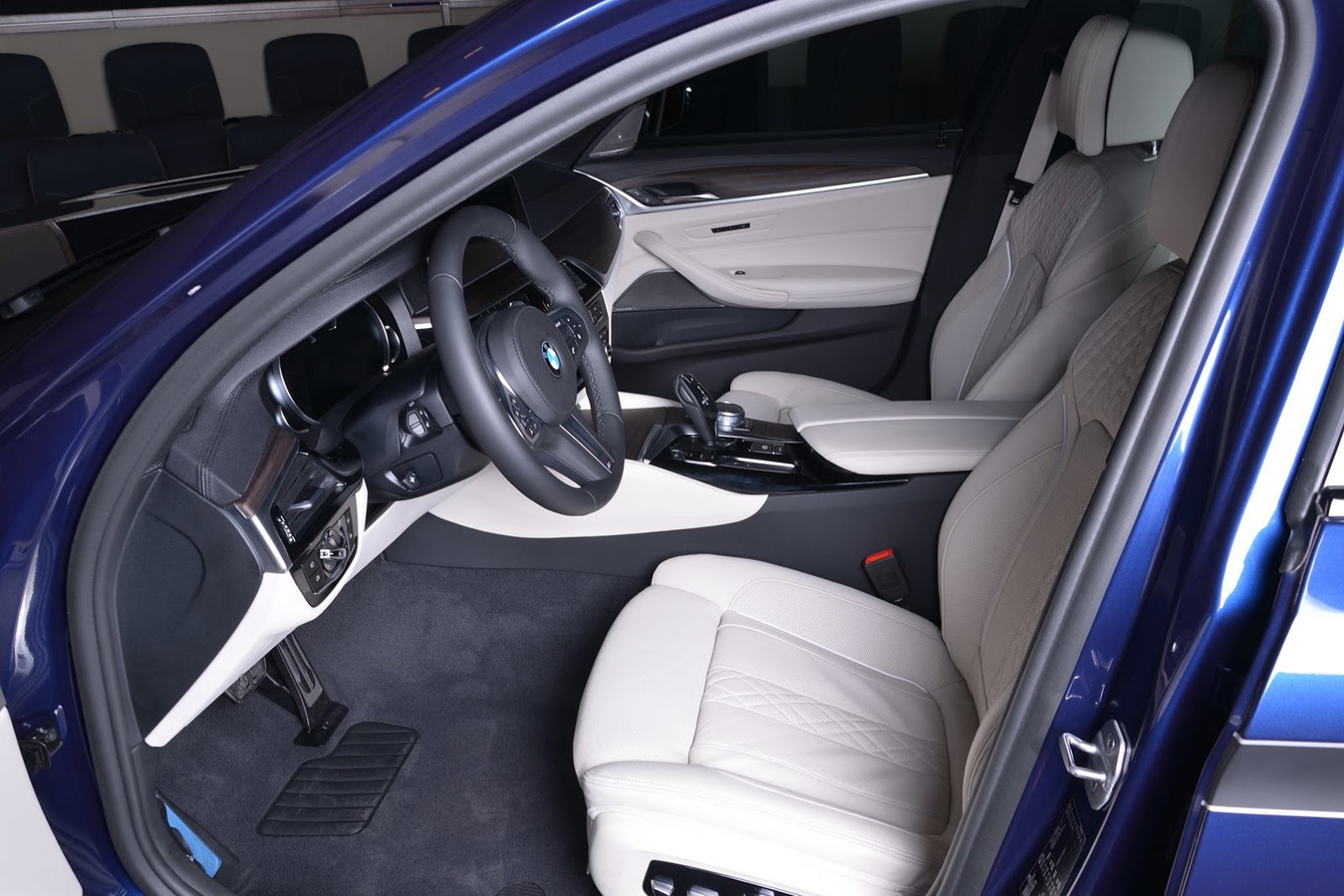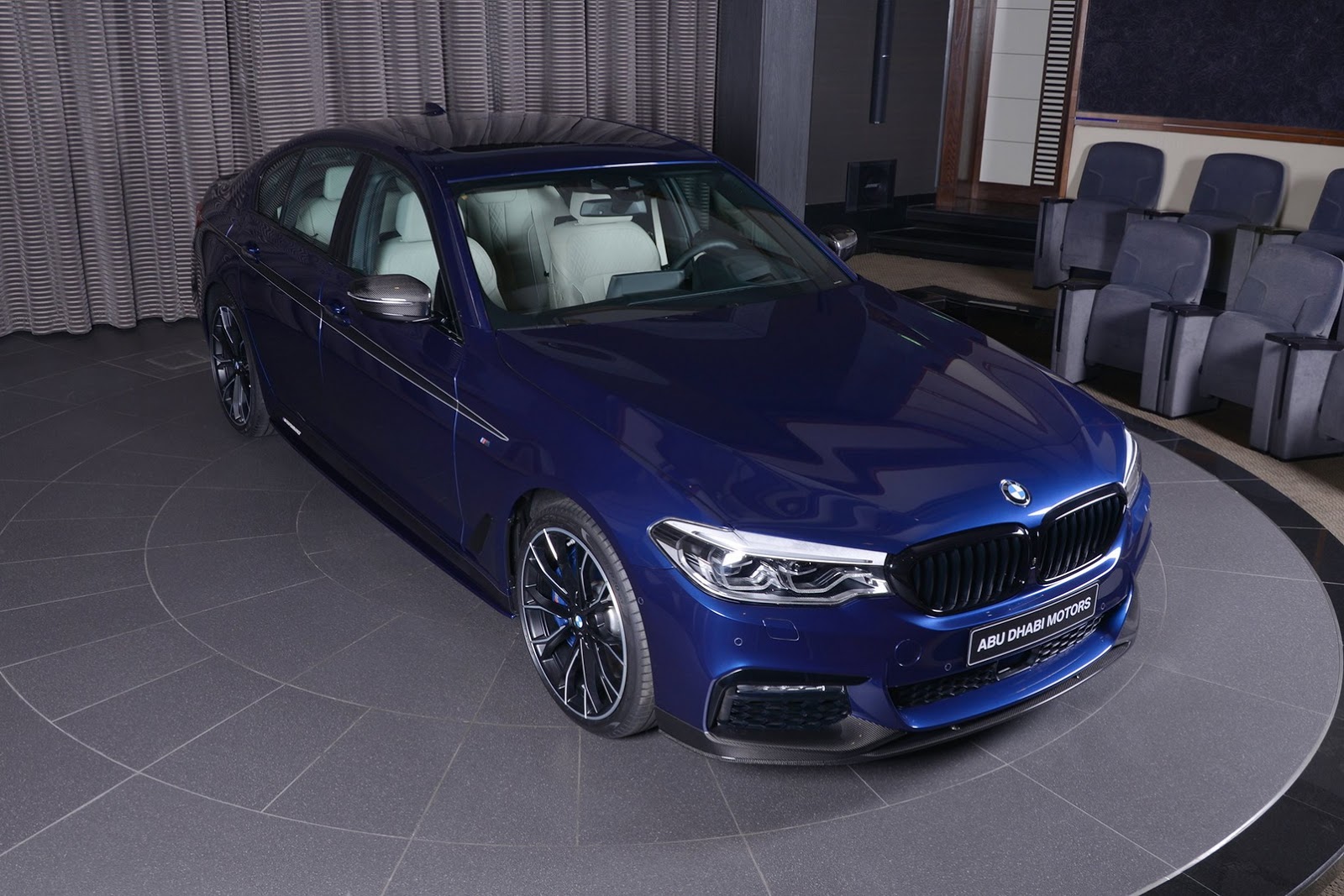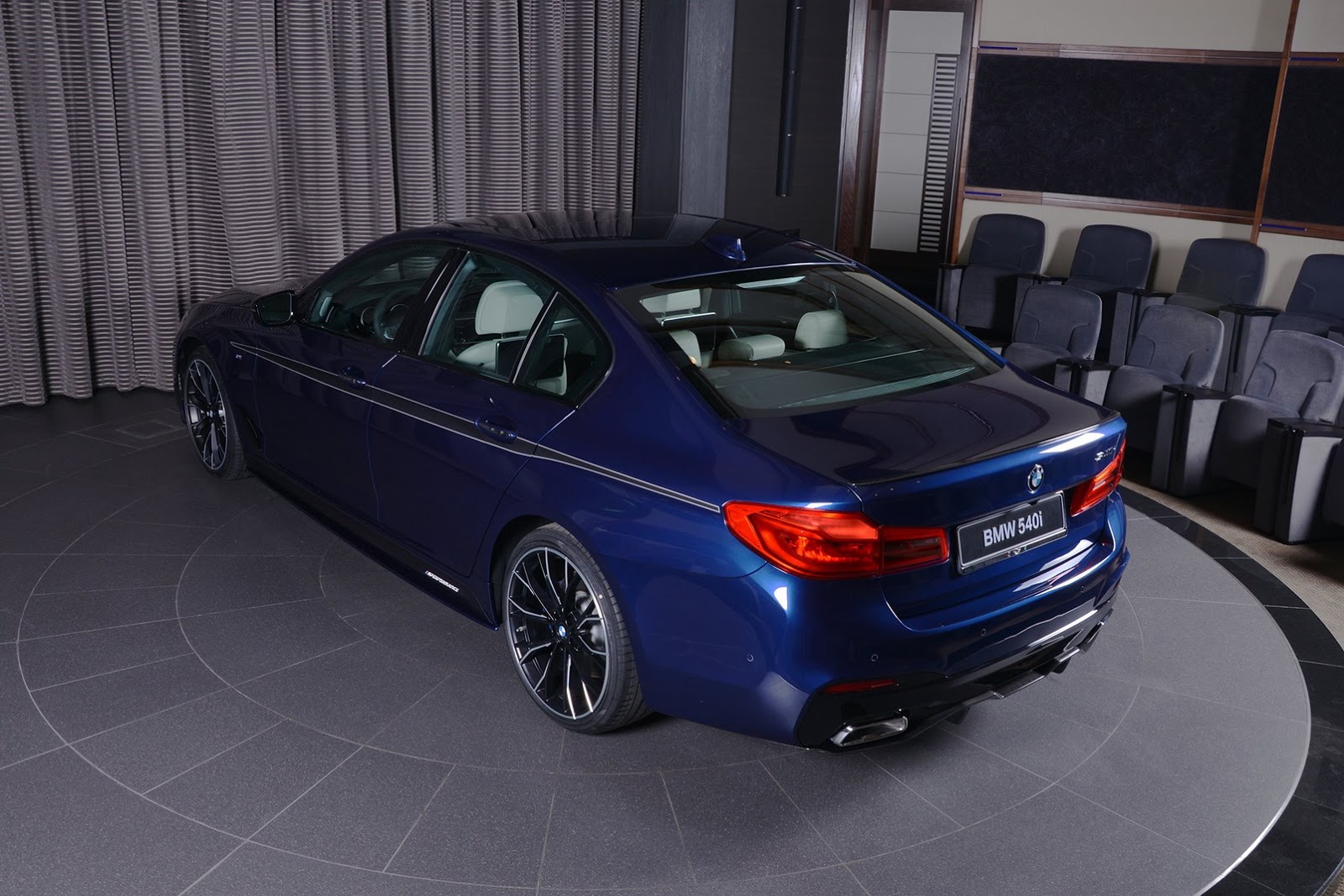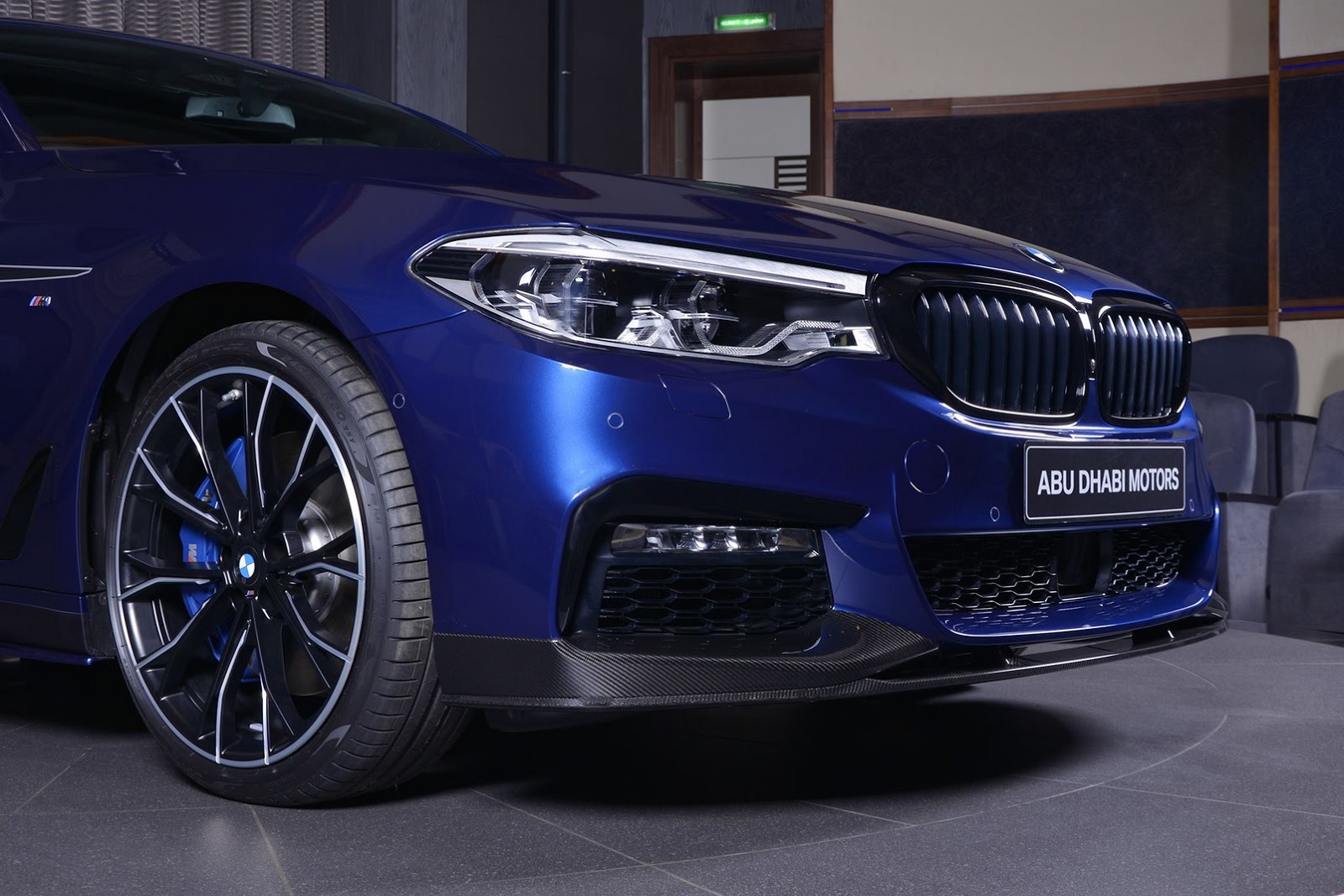 What stands out first on this particular 540i from BMW Abu Dhabi, is its Mediterranean Blue paint job, giving us a really interesting black on blue contrast for the exterior.