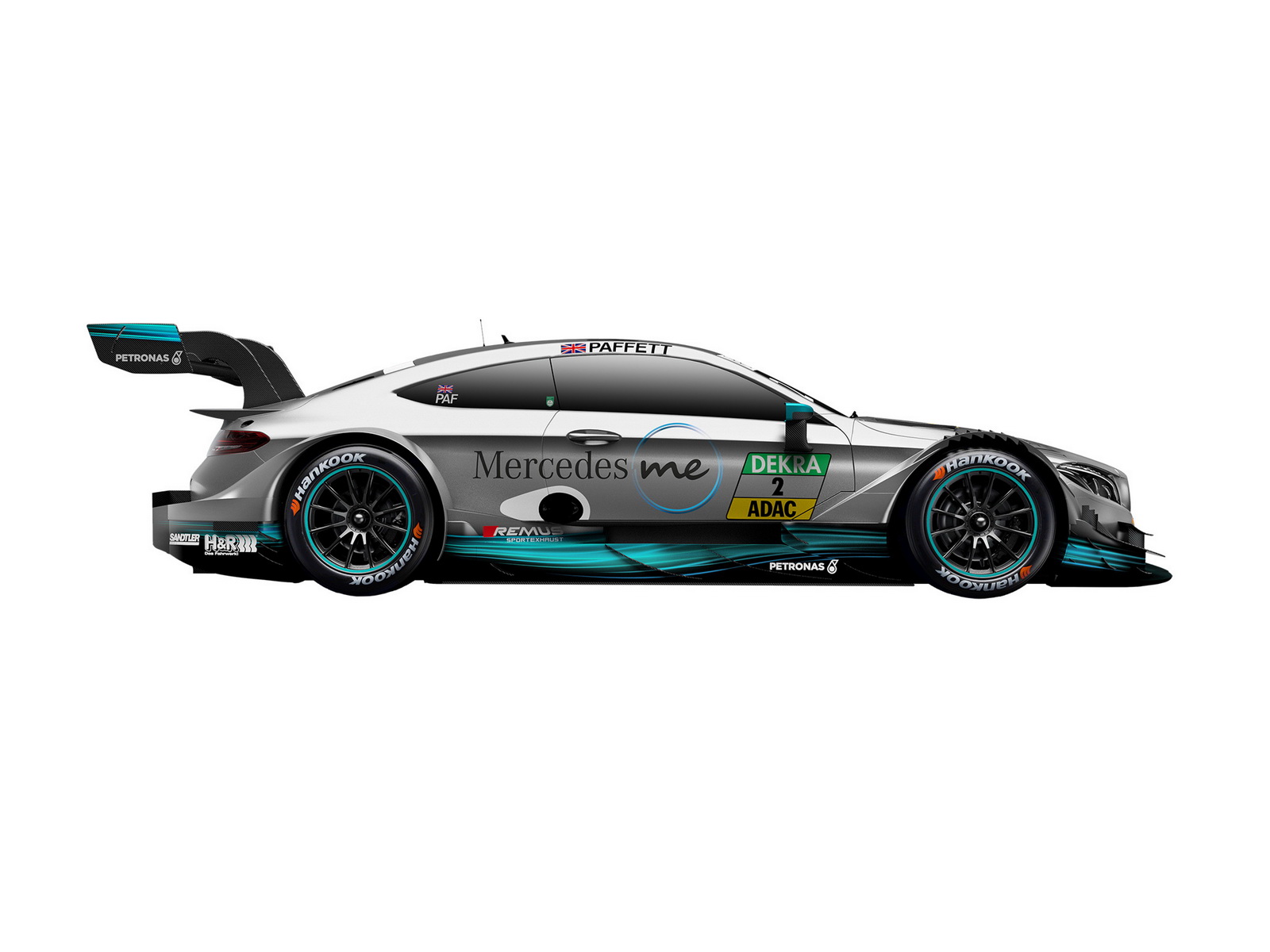 The new liveries adopted by the Mercedes-AMG Motorsport DTM team cam also be found on the trucks, pit walls, driver’s overalls as well as other places, and is also shared with the Formula One Silver Arrows of Lewis Hamilton and Valtteri Bottas.
