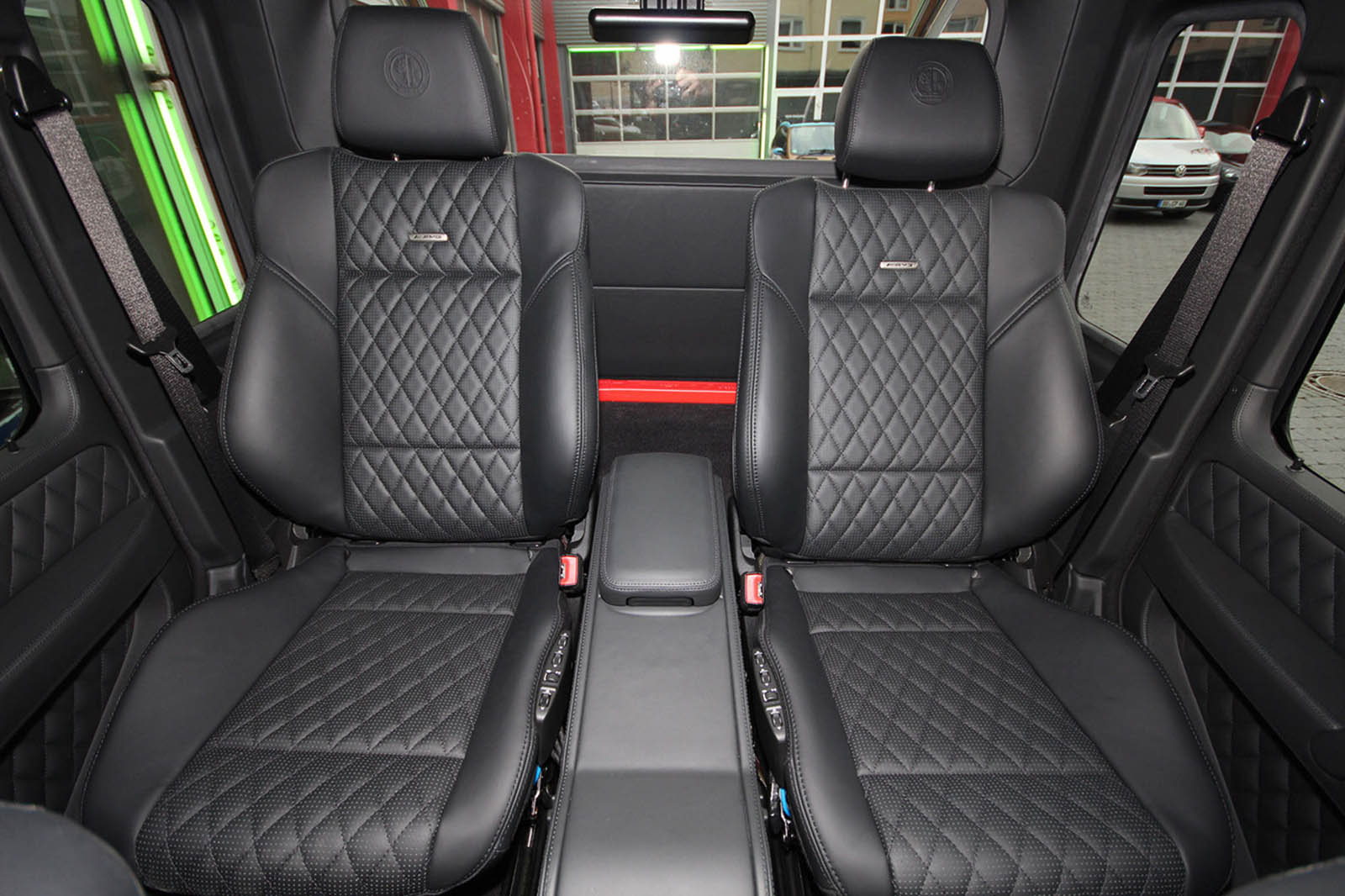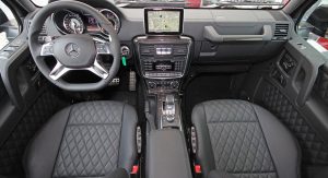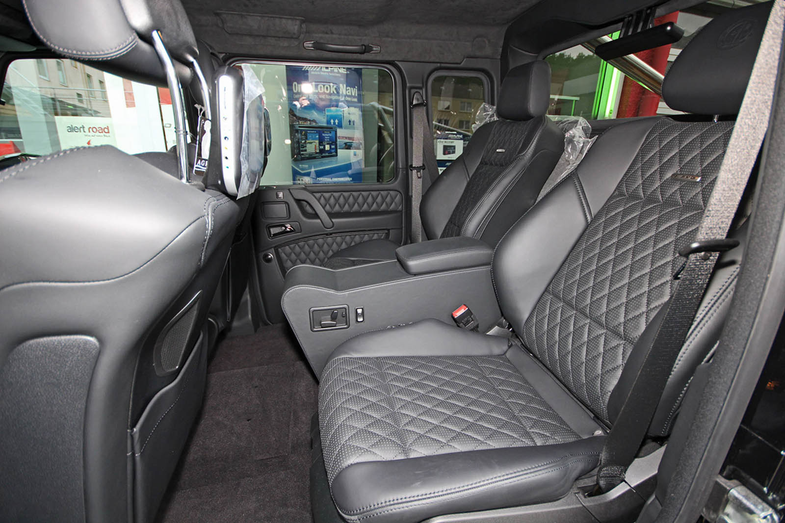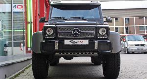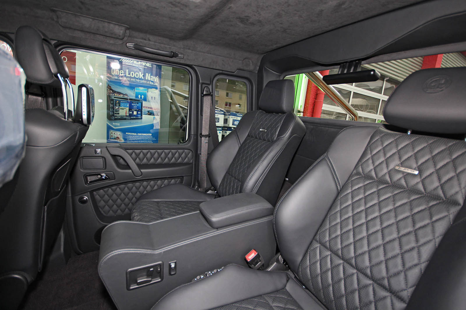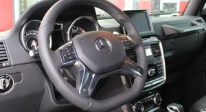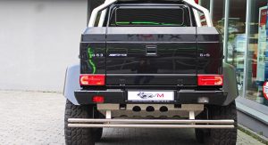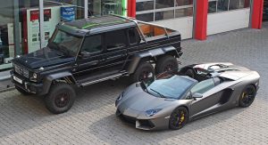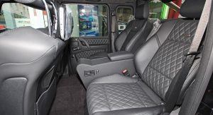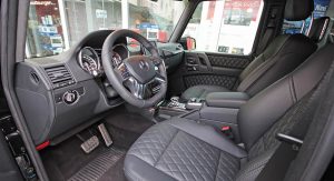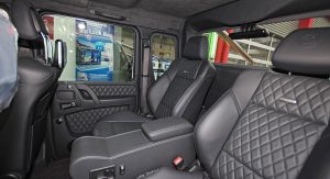 Described as being identical in every way, both are painted Obsidian Black and equipped with all the options, from the stainless steel exterior trim package to the black Designo leather interior upholstery. Of course they also pack 5.5-liter twin-turbo V8 engines sending 536 horsepower and 561 lb-ft of torque through a seven-speed automatic transmission to not two, not four, but six wheels. And they ride on jacked-up suspensions with portal axles and a foot and a half of ground clearance.