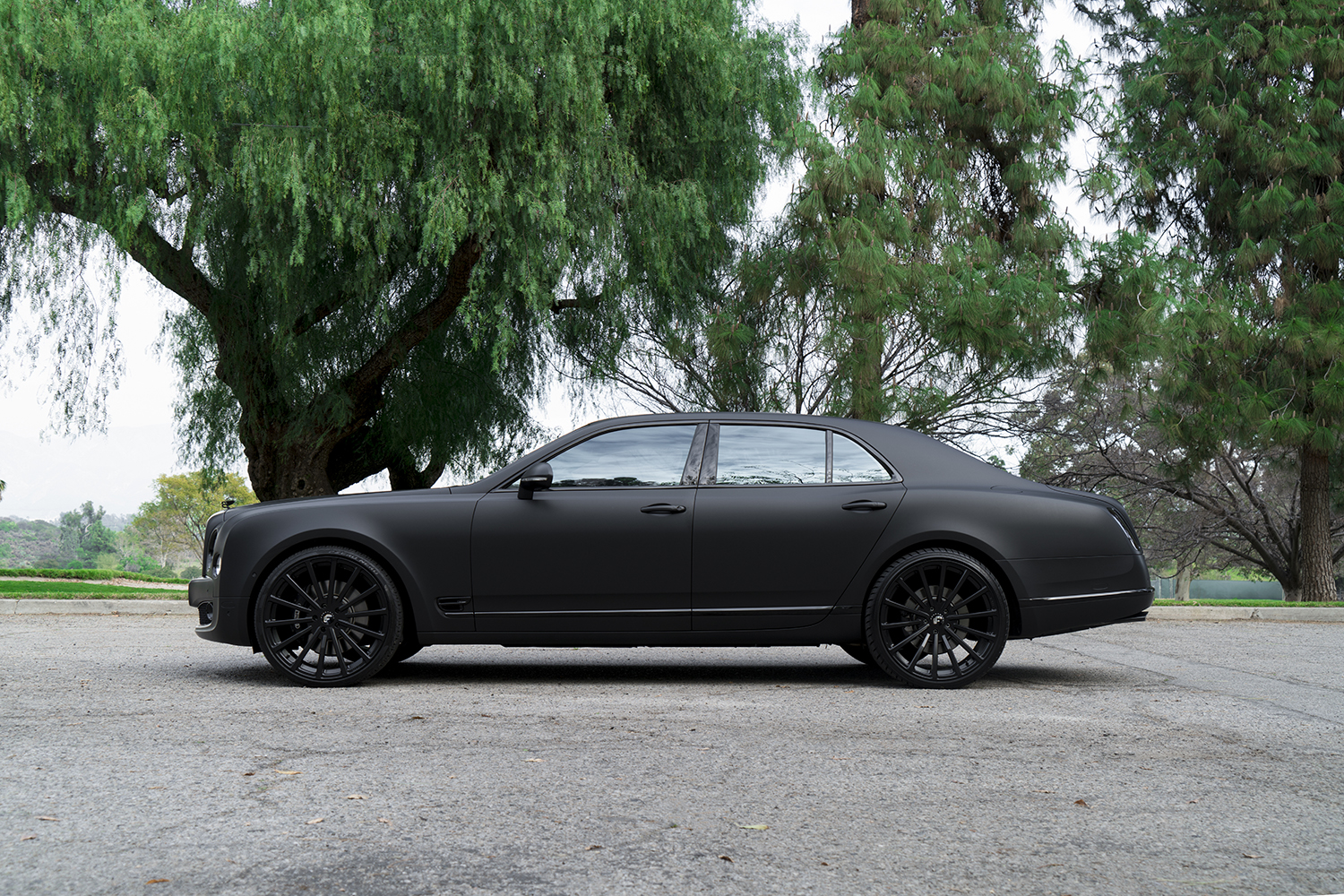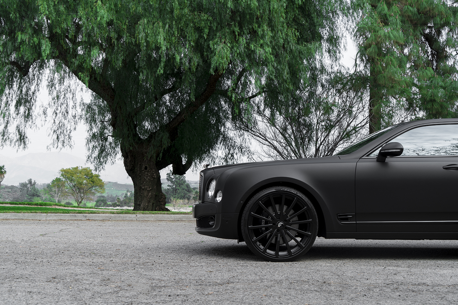 This Mulsanne comes from Forgiato wheels and has been totally murdered out to the point where it loses all of its class and if you ask this author, loos hideous.