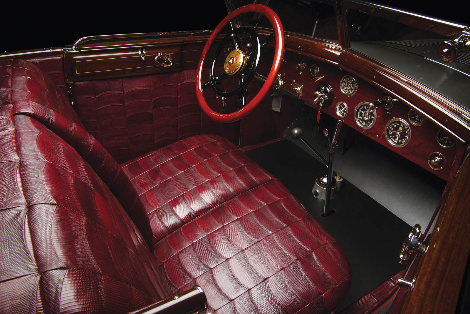 Evidently smitten by its signature low windshield, disappearing convertible roof, reptile-skin red leather interior, beautiful wood trim, and highly polished brightware, oil baron Frederick Henry Bedford, Jr. bought it virtually right off the show stand at the 1929 New York Auto Salon. It remained in his family’s possession for some 75 years until noted father-and-son collectors Paul and Chris Andrews bought the car from the Bedford estate in 2008, and two years later commissioned an exhaustive restoration process that took another two years.