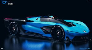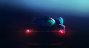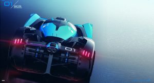 At the front, the 905_e includes a bold front fascia that incorporates slim headlights, a bold front splitter and an incredibly low-slung front end. Additionally, it includes a small glass cockpit that sits at almost the same level as the huge front and rear wheels. At the rear, there’s a set of two small exhaust pipes and an open tail where some of the suspension components are visible and complemented by six small, vertical taillights.