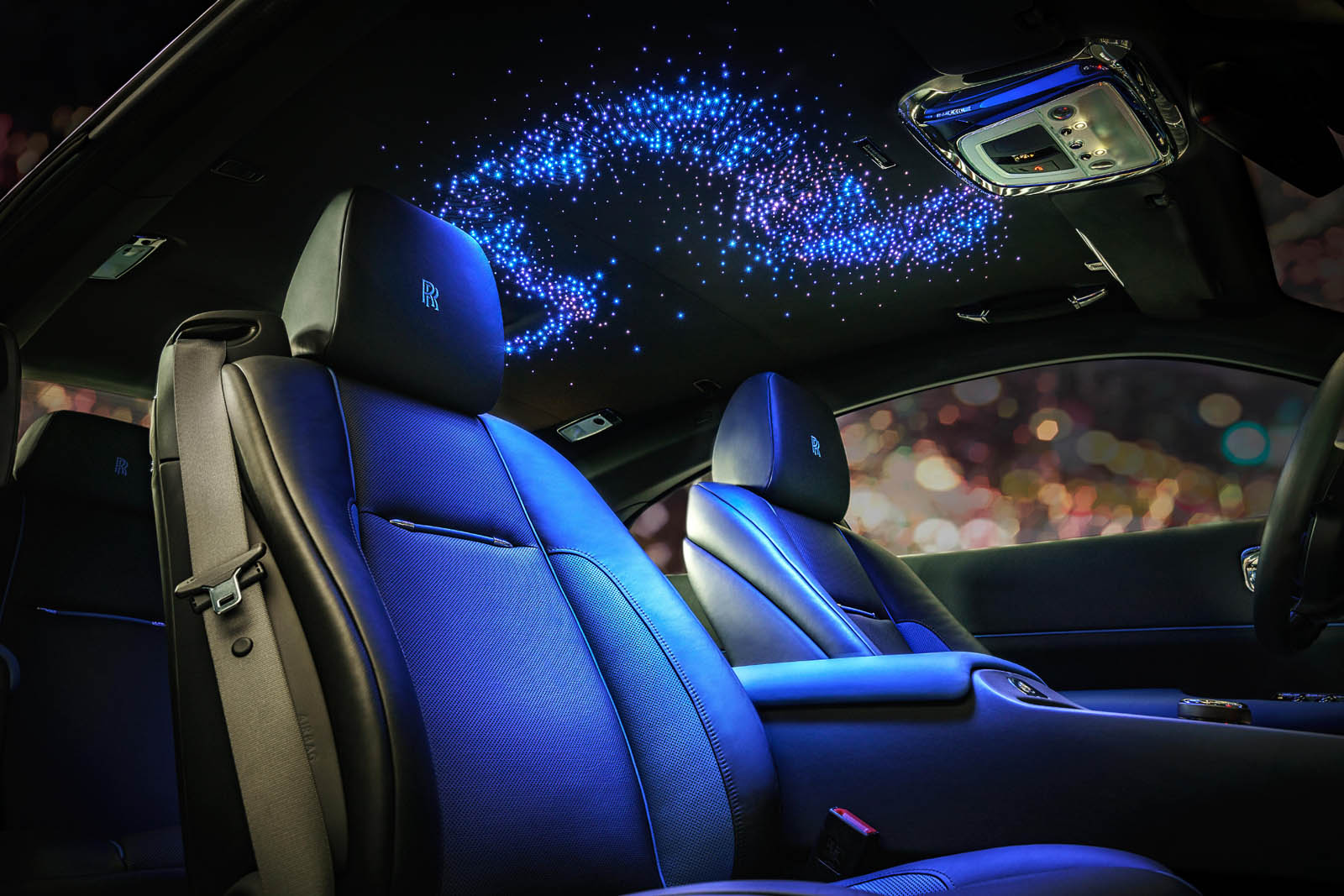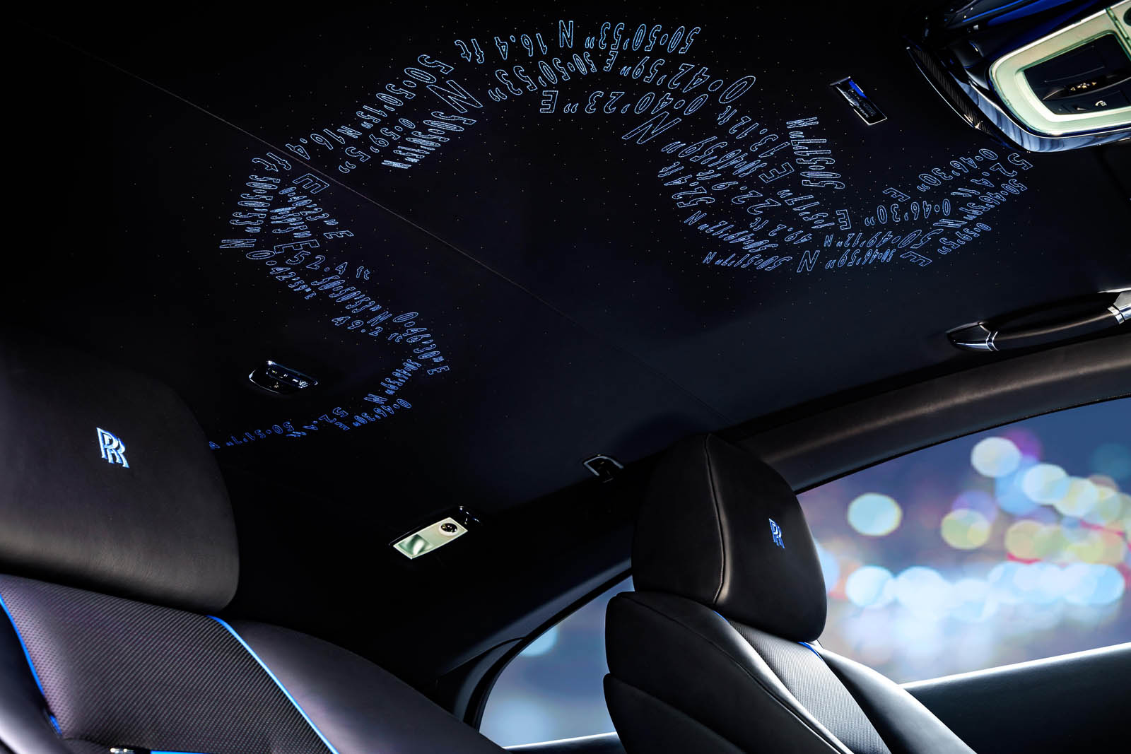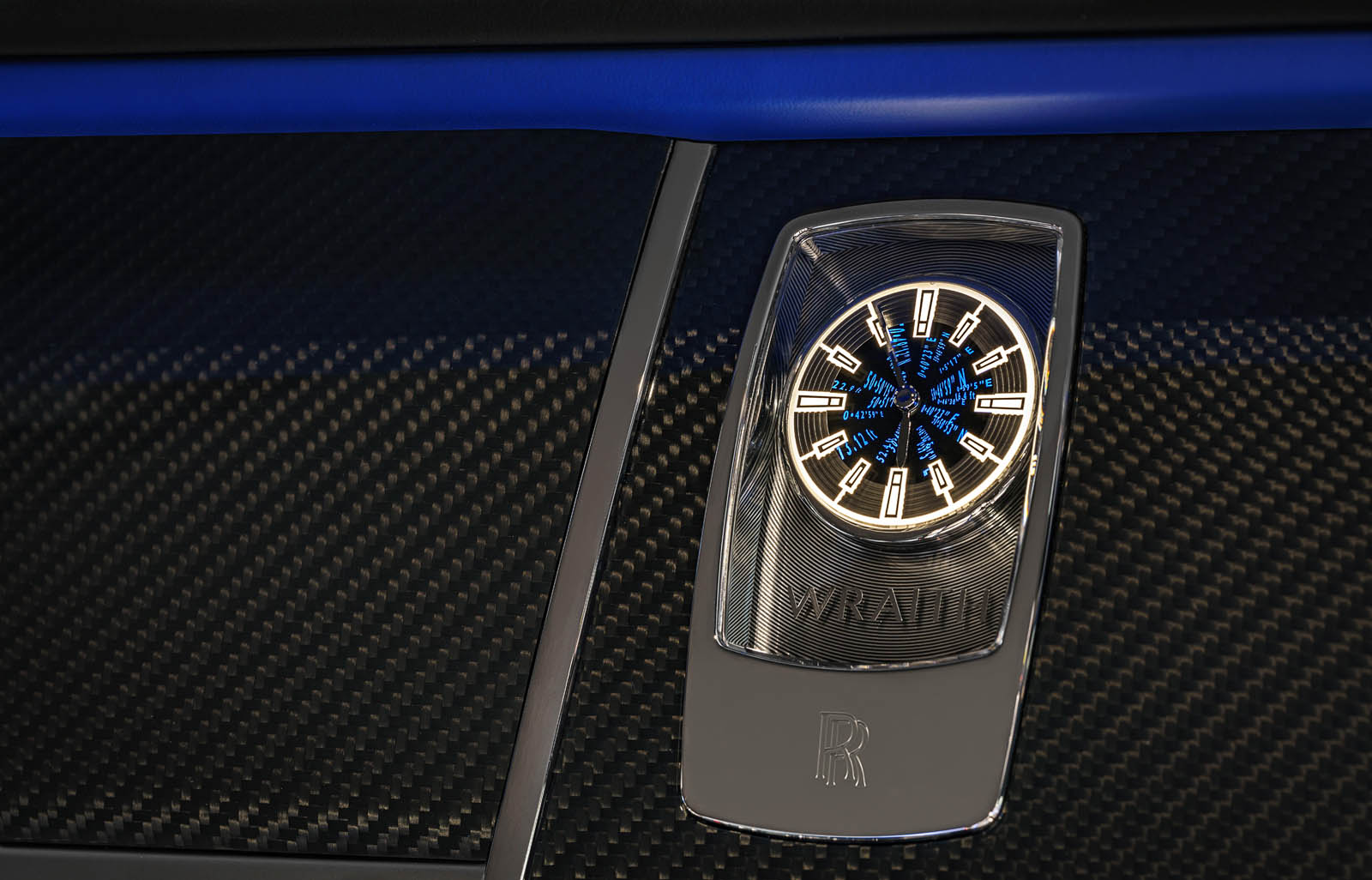 While at the factory, Kazem also collaborated with the Rolls-Royce Bespoke design team to create a unique Wraith commissioned by Abu Dhabi Motors. The special fastback was enhanced primarily inside the luxurious cabin with such upgrades as a hand-painted “feature line,” a unique backlit clock, and a custom Starlight Headliner that itself took 90 hours to create out of 863 fiber-optic threads and 60,000 individually embroidered stitches.