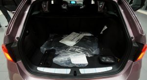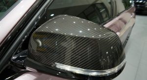 Among its on-board gadgets, we count the heads up display, wireless charging, park distance control and the Harman Kardon audio system. It also has heated seats, Apple CarPlay compatibility, Wi-Fi hotspot, illuminated door sills, LED door projector and carbon fiber on the brake handle, selector lever, center console, dashboard and door panels.