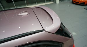 Aside from the BMW Individual “Rose Quartz Metallic” that costs somewhere around $5,000, it’s got the Drivers Assistance package, Lighting package, M-Sport package, and even custom 20″ Style 405M M-Performance wheels, which cost over $4,000, or as much as a used smart fortwo. Inside, there’s plenty of carbon fiber and Alcantara trim, especially on the M-Performance steering wheel.