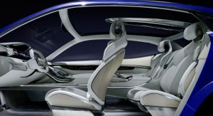 While the huge wheels with illuminated spokes largely dominant the sides of the concept, SAIC has spent the time to expertly craft doors with integrated handles and have made way without traditional B-pillars. Like the Mazda RX-8, the front doors open normally while the rear ones are suicide doors, Rolls-Royce style.
