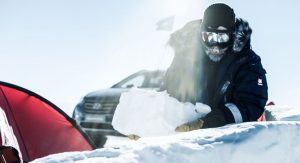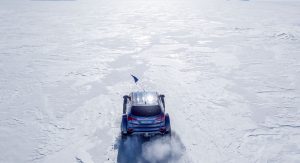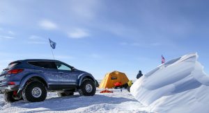 Throughout the treacherous journey, the team had to cross the Ross Ice Shelf. This huge glacier lies beyond the continental land mass, is hundreds of feet deep and is filled with deep, hard-to-see fissures. The Hyundai became the first passenger vehicle to drive across the glacier and was tethered to three support trucks in case one of them fell into the abyss.