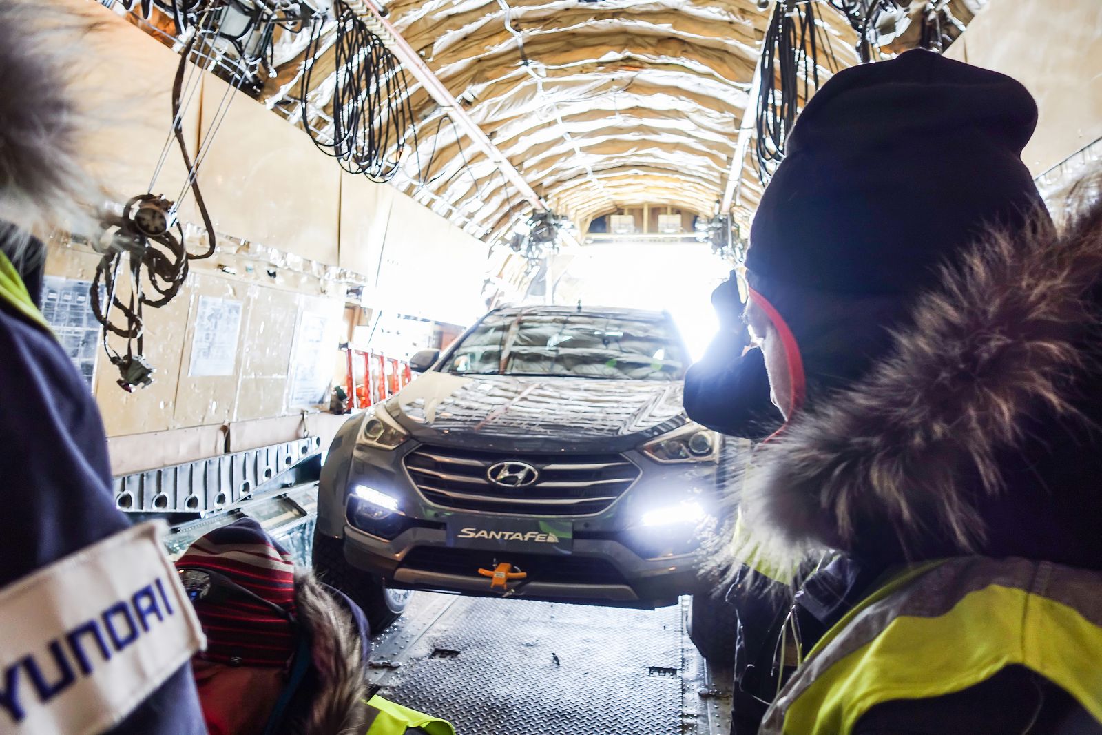 The Santa Fe used was customized by expedition leader Gísli Jónsson and outfitted with huge, low pressure tires, new front and rear sub-frames, upgraded suspension components and gears installed inside the wheel hubs. The 2.2-litre diesel powertrain remained stock.