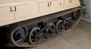 Based on a standard Ford 3-ton VS000S 4×2 truck, with sets of Carden-Lyd tracks, and wheel assemblies from captured British Universal type carriers, the vehicle is 19-feet and 5in long, 7-feet and 2in wide, and 8-feet and 6in tall, to the top of the rocket launchers. It tips the scales at approximately 7 tons, when loaded, and benefits from 8mm armored plates at the front, sides, and rear, and 6mm at the top and bottom.