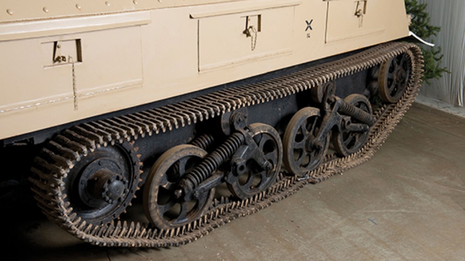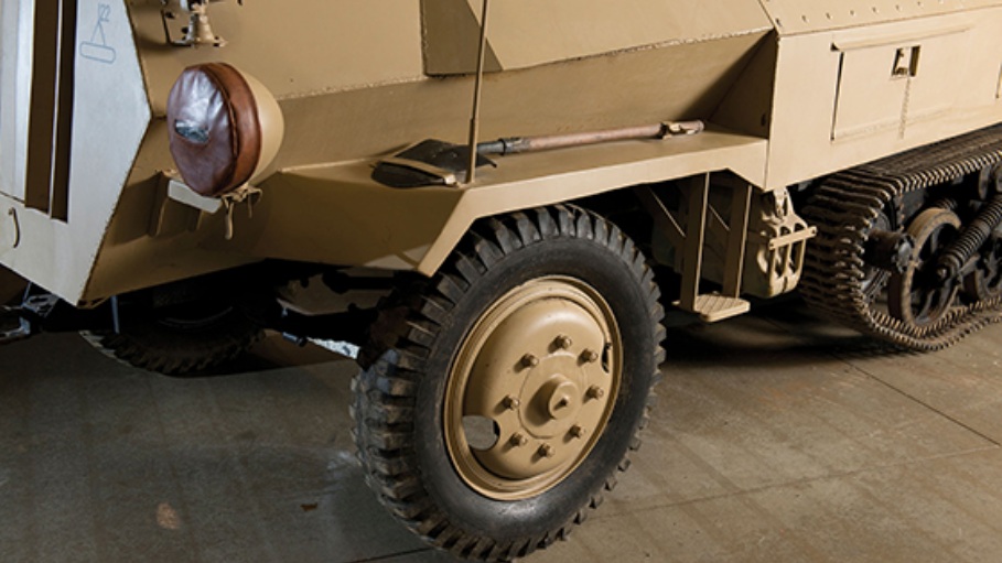 Based on a standard Ford 3-ton VS000S 4×2 truck, with sets of Carden-Lyd tracks, and wheel assemblies from captured British Universal type carriers, the vehicle is 19-feet and 5in long, 7-feet and 2in wide, and 8-feet and 6in tall, to the top of the rocket launchers. It tips the scales at approximately 7 tons, when loaded, and benefits from 8mm armored plates at the front, sides, and rear, and 6mm at the top and bottom.
